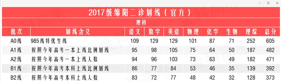 2020绵阳二诊分数线