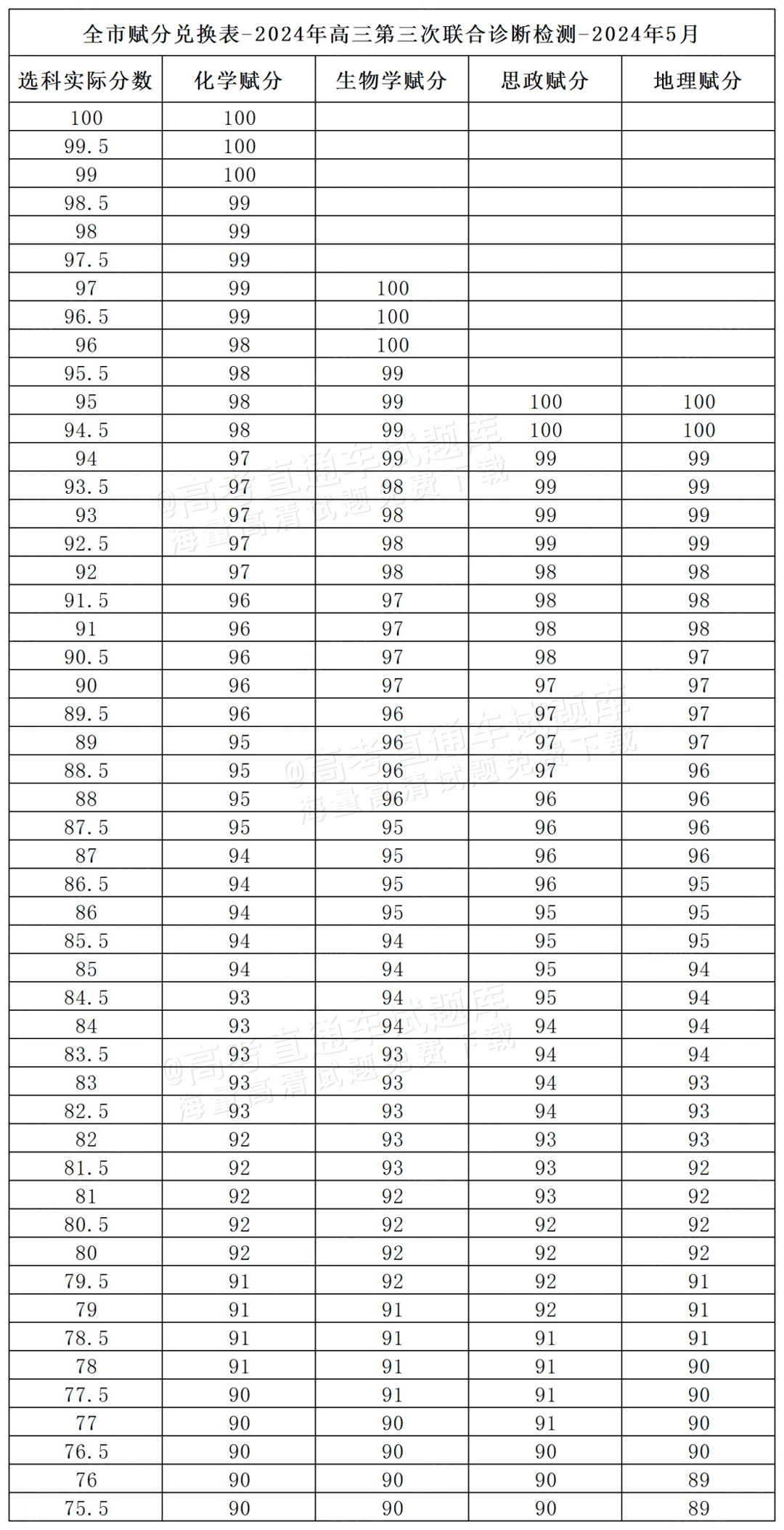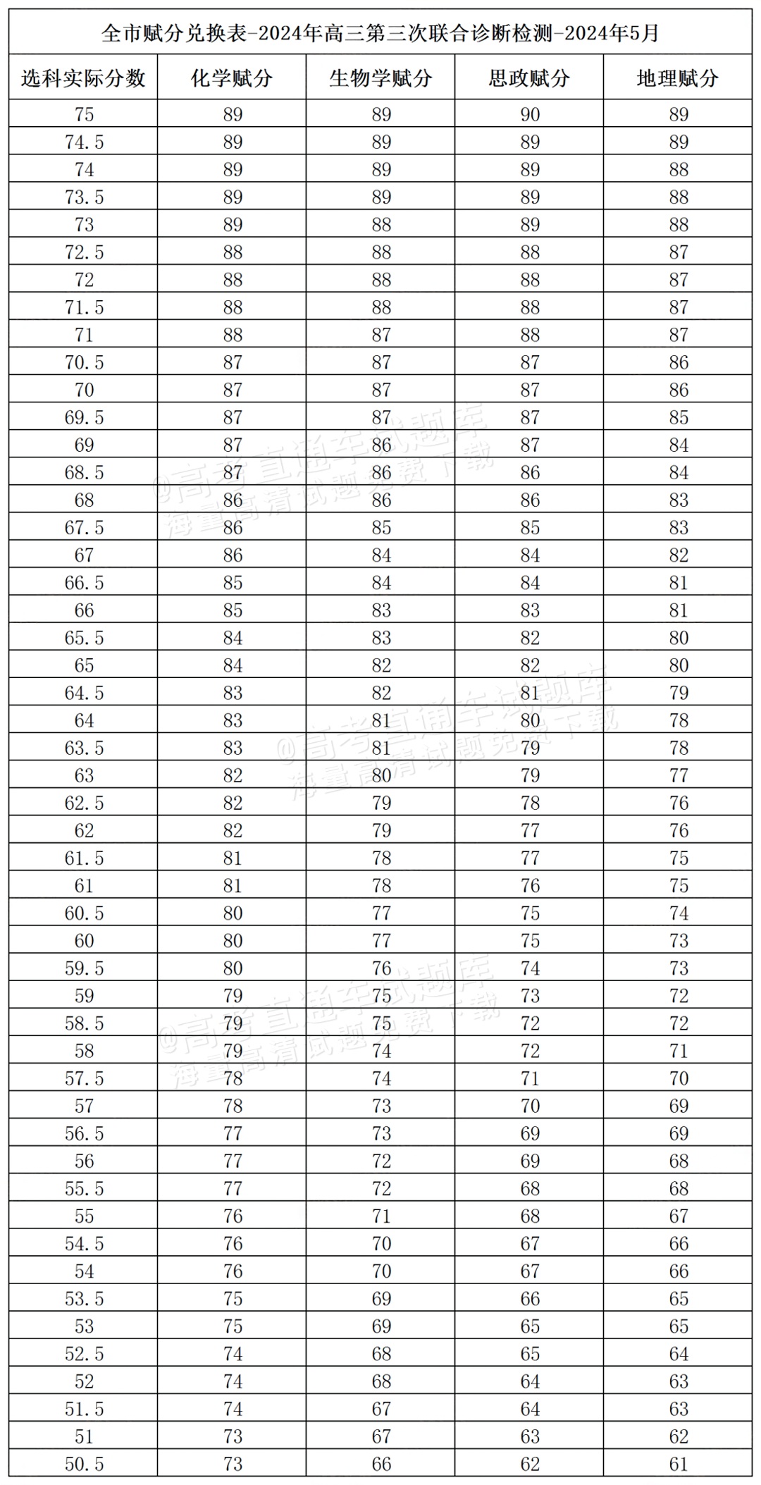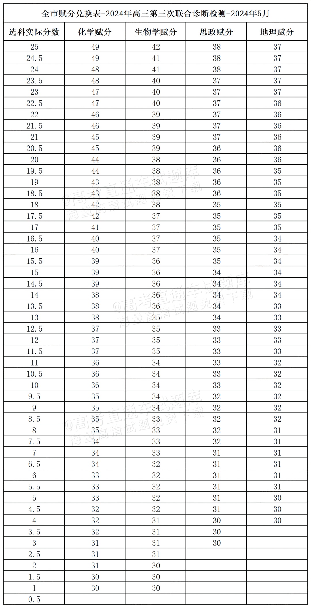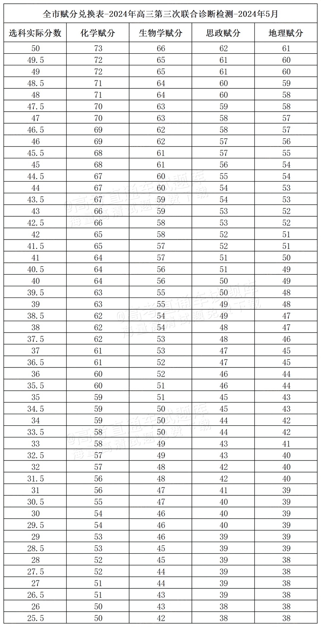 2024重庆三诊(康德卷)赋分表公布
