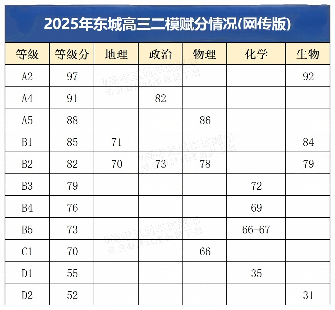 2025北京东城区二模分数线:特招线499本科线405