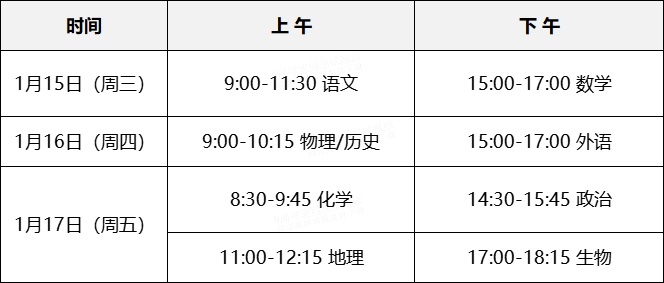 2025福建高三1月六市联考考试安排!