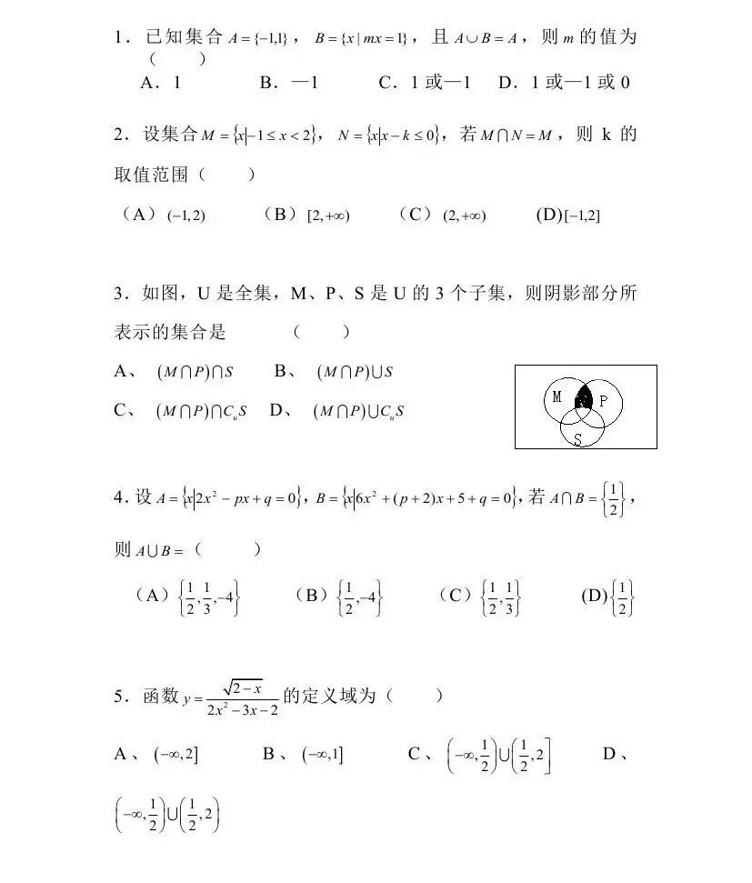 高考数学:15道集合练习题,选择必须满分啊!不要偷懒快做题!