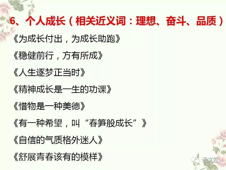 6、个人成长(相关近义词:理想、奋斗、品质)
