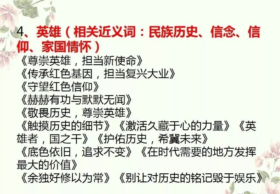 4、英雄(相关近义词:民族历史、信念、信仰、家国情怀)