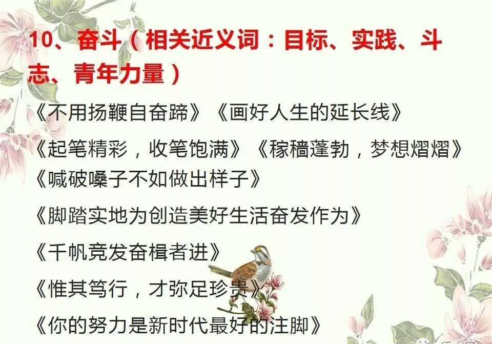 10、奋斗(相关近义词:目标、实践、斗志、青年力量)