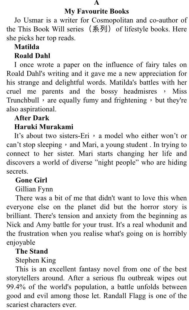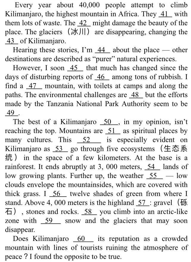 2019年普通高等学校招生全国统一考试(全国卷I)英语