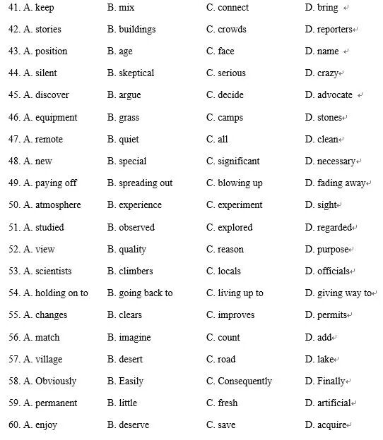 41. A. read B. forgot C. thought D. heard