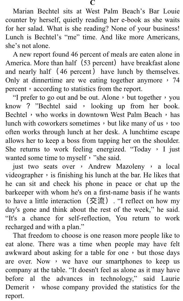 42. A. read B. trembling C. eating D. sleeping