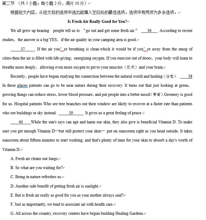 2019年普通高等学校招生全国统一考试(全国卷II)英语