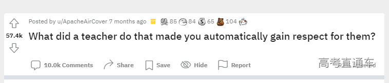 Reddit论坛上有人提问,“有没有一个瞬间,你对老师的敬意油然而生?”,获得了上万条的回答。