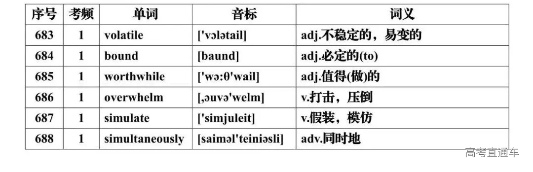今天给大家整理高考核心高频词汇(688个),高三的同学们利用零碎时间认真背单词,高考英语肯定会有提升!建议高一高二的同学们收藏起来每天背一背,这样高三学起来才会更轻松!