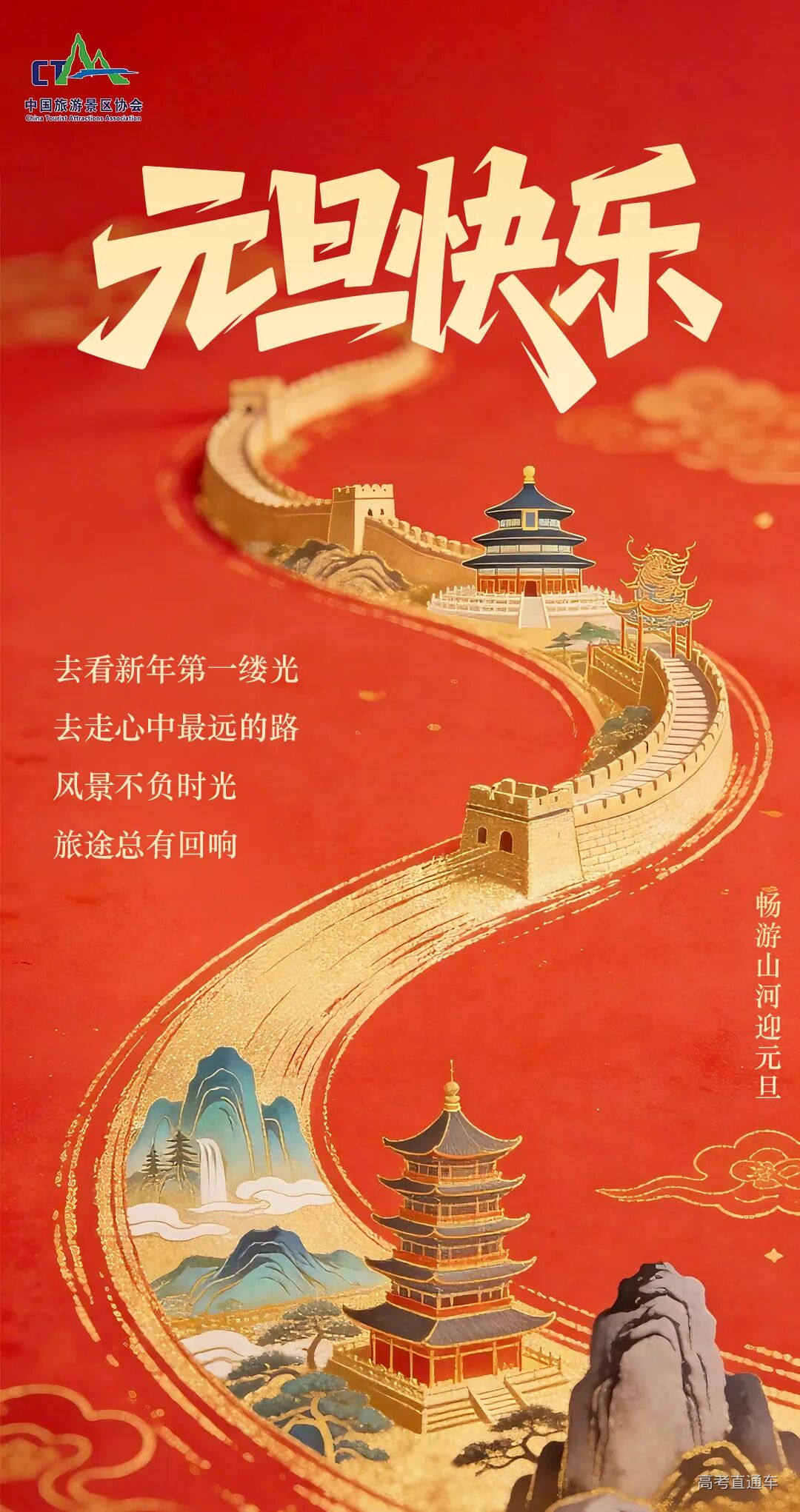 岁月如歌,华章日新。当新年的第一缕阳光洒满神州大地,我们满怀憧憬告别2025,阔步迈入2026的崭新征程。值此辞旧迎新的美好时刻,中国旅游景区协会谨向全体会员单位、奋战在景区一线的广大从业者,向长期以来关心支持景区行业发展的各级政府部门、社会各界朋友,致以最诚挚的新年祝福和最崇高的敬意!