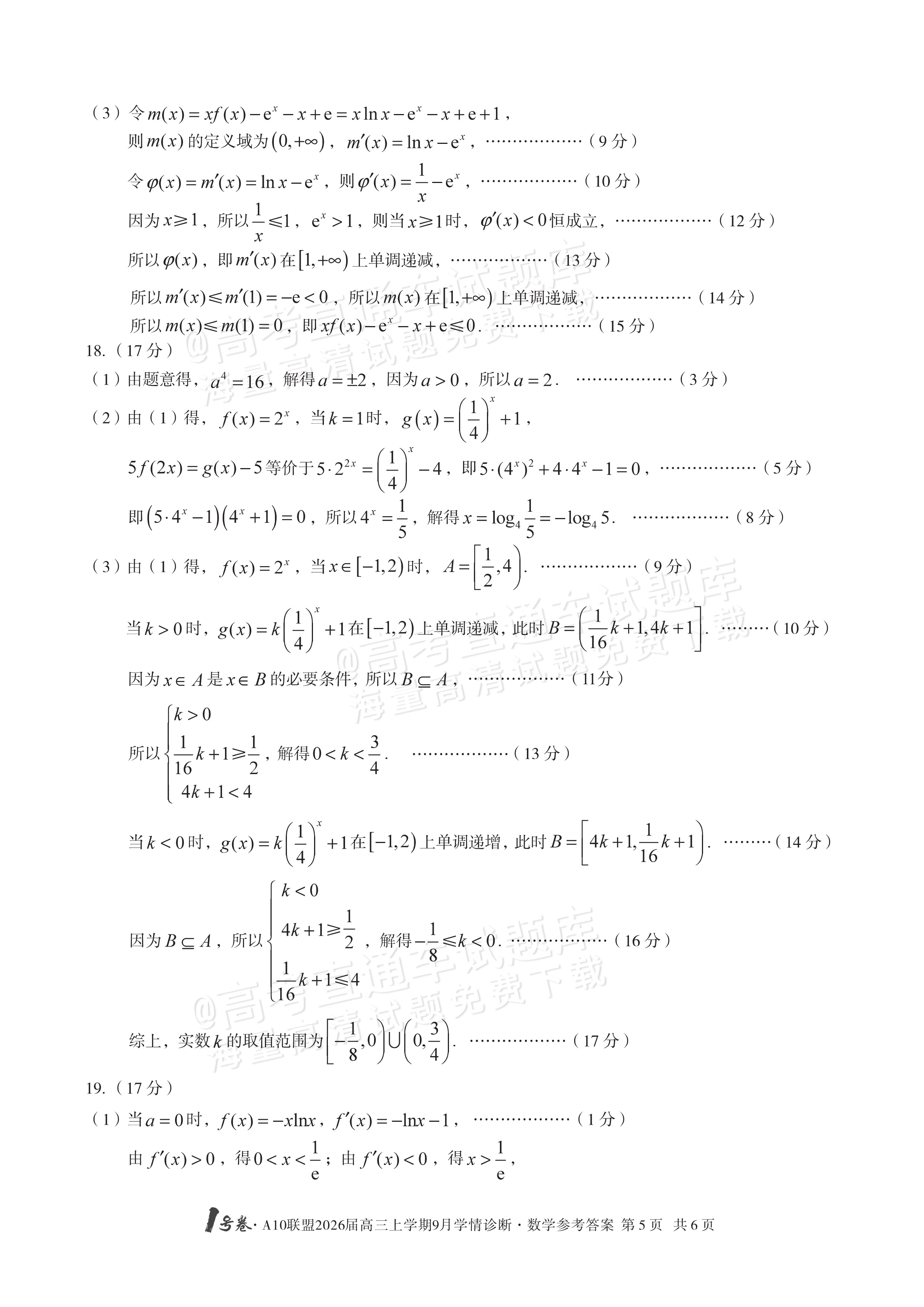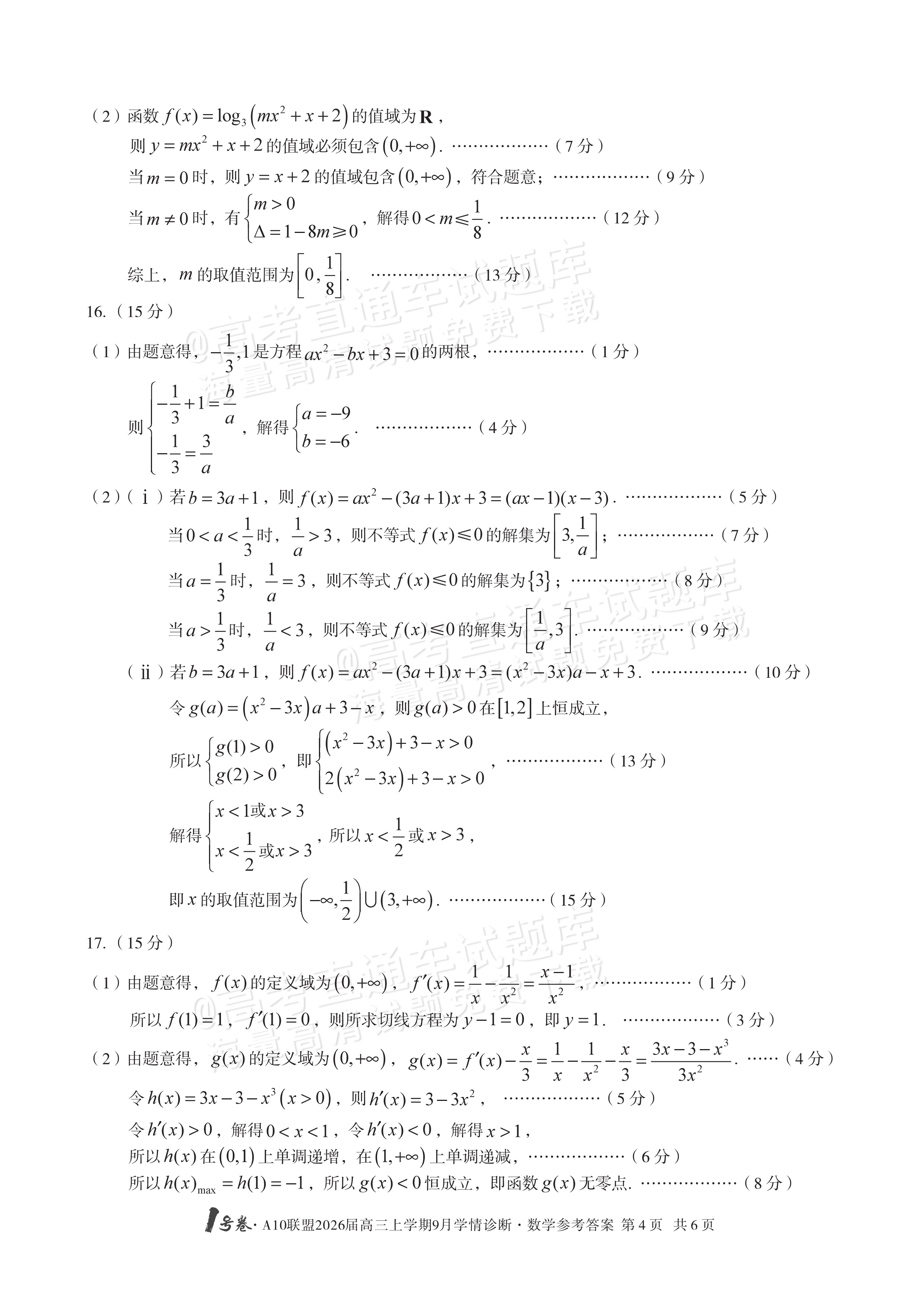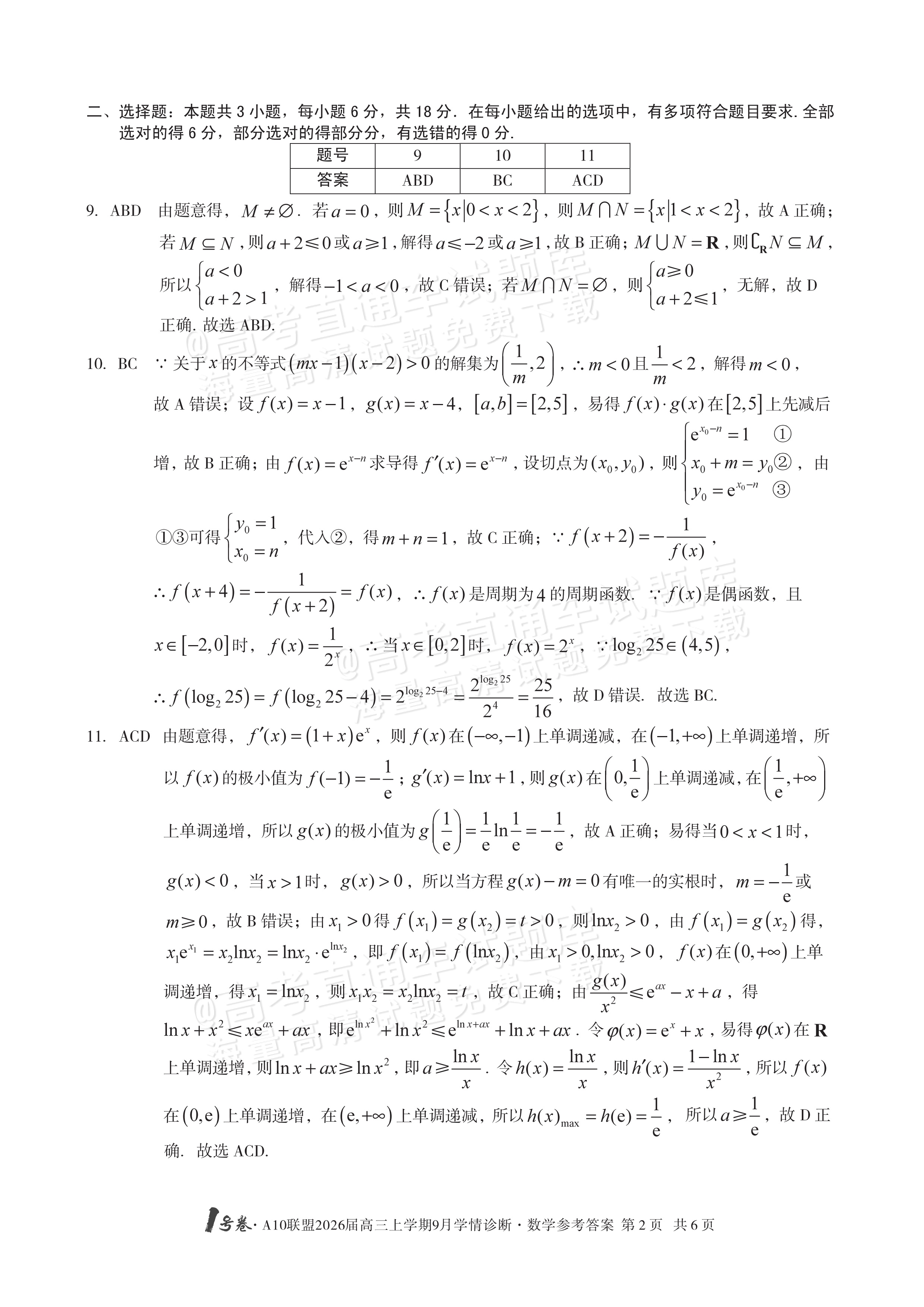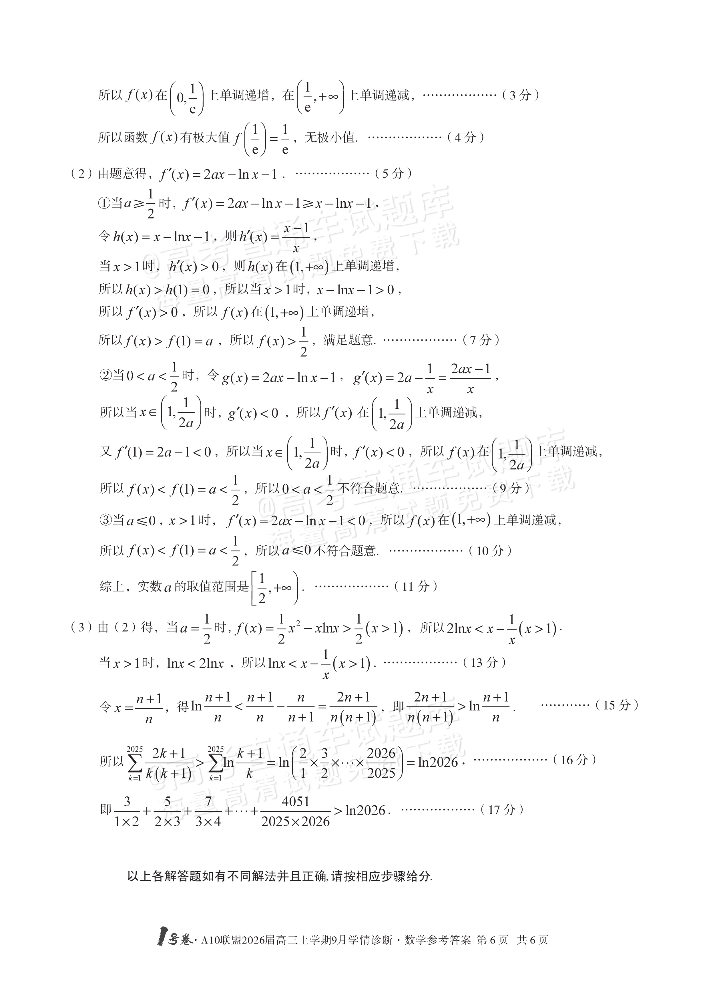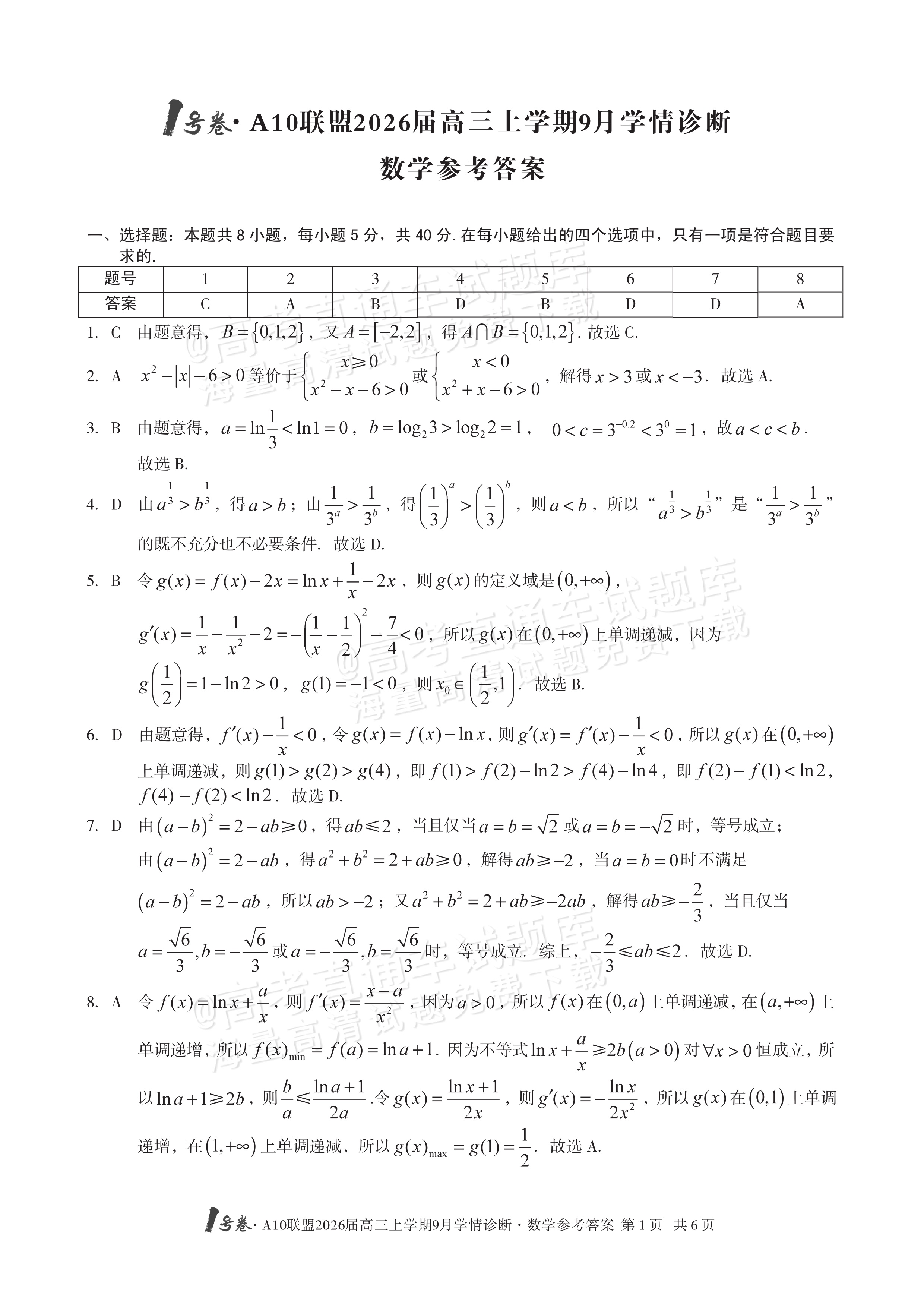 26届9月数学必刷卷-安徽A10联盟高三9月学情诊断
