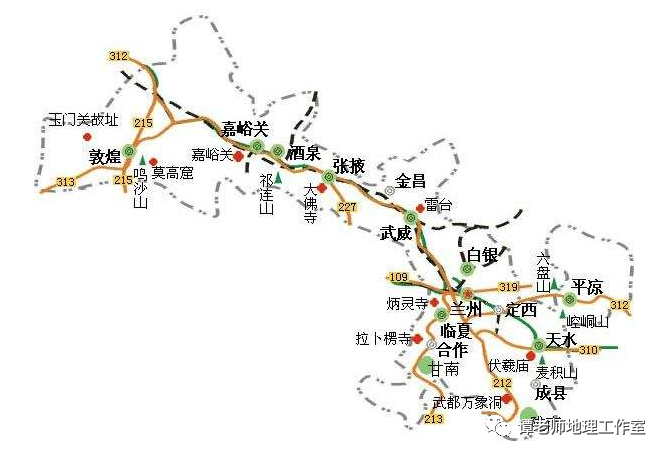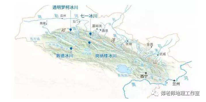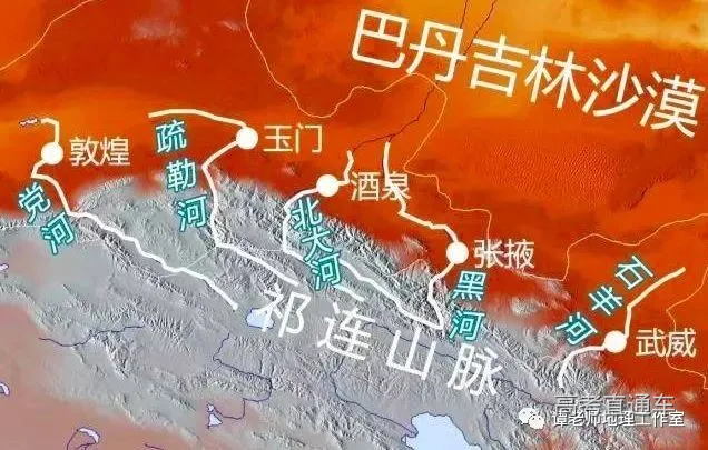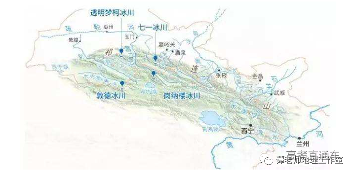 许多人知道东西方文明交流的大通道——丝绸之路,知道大名鼎鼎的河西走廊,但是人们却不知道祁连山对河西走廊和丝绸之路的贡献,它是哺育河西走廊的生命之源。 祁连山的平均山脉海拔在4000~5000米之间,山顶有终年积雪,发育了众多的雪山和冰川。祁连山已查明共有冰川3066条,总面积2062平方公里,储水量约1320亿立方米,这是一个巨大的固体水库。其中老虎沟12号冰川是祁连山最大的山古冰川。 每年夏季,这些冰川大量融化,连同祁连山阻挡夏季风形成地形雨一起,形成水流向北流向河西走廊。 祁连山北坡流向河西走廊的河流形成了石羊河水系、黑河水系、北大河水系、疏勒河水系和党河水系等五大水系,而且一个水系对应一座城市。从河西走廊东面算起,石羊河对应着武威市,黑河对应着张掖市,北大河对应着酒泉市和嘉峪关市,疏勒河对应着玉门市,党河对应着敦煌市。 正是有了祁连山,有了极高山上的冰川和山区降雨才发育了一条条河流,养育了河西走廊一个个城市,而且水量的大小决定了城市的规模。譬如因为黑河在这些河中的水量最大,因此张掖也就成了河西走廊最大的城市。