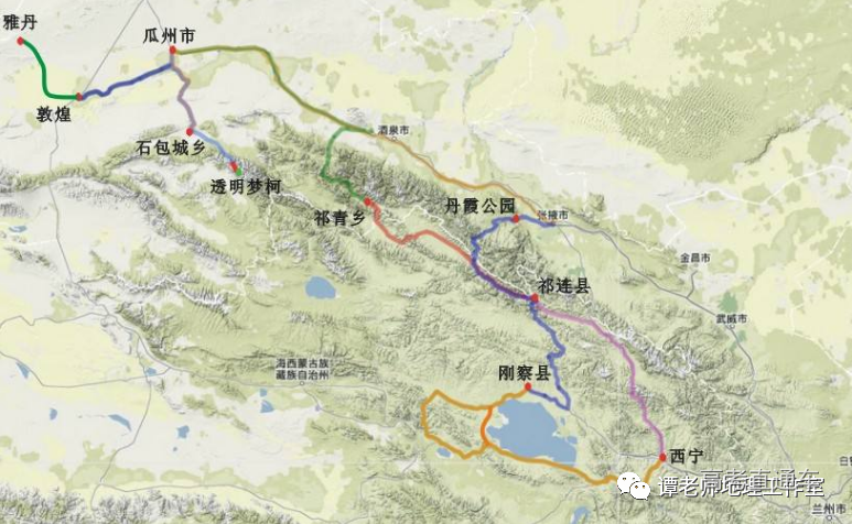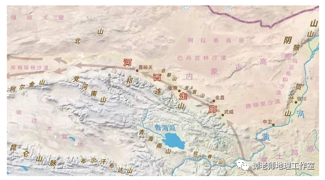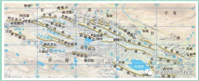 祁连山山系 我们在实际的地理学习中,往往把祁连山想象成长长的一条线,其实祁连山并不是一条单独的山岭,而是由多条西北-东南走向的平行山脉和宽谷组成的庞大山系。 祁连山与河西走廊