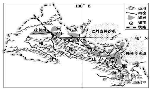 祁连山北坡分布均衡的冰川造就了河西走廊分布均衡的五大河流,五大河流造就了五大绿洲,五大绿洲连缀成了河西走廊,谭老师地理工作室综合整理河西走廊维系了一条伟大的丝绸之路。正是由于祁连山对河西走廊的巨大贡献,使得河西走廊成为中国历史上和西部联系的最重要的窗口。 敦煌壁画中张骞出使西域图 祁连山对中国最大的贡献,不仅仅是河西走廊,不仅仅是丝绸之路,不仅仅是引来了宗教、送去了玉石,更重要的是祁连山通过它造就和养育了冰川、河流与绿洲做垫脚石和桥梁,让中国的政治和文化渡过了中国西北海潮的沙漠,与新疆的天山握手相接了,中国人在祁连山的护卫下走向了天山和帕米尔高原。据说张掖之名是取“断匈奴之臂,张中国之掖(腋)”之意,河西走廊就是中国之臂,它为中国拽回了一个新疆。 今天的河西走廊仍然是我国交通网和经济发展的大动脉。像连接新疆的高速公路、高铁、石油管道、西气东输等关系国计民生的大工程,都得通过这里把内地和新疆甚至中亚紧密的联系起来。并且在“一带一路”战略的发展下,它又重新发挥着更为璀璨的光芒。 考题设计 一、综合题 1.阅读图文材料,完成下列问题。 材料一 祁连山区NDVI(植被指数:值越大,植被覆盖度越高)与气温、降水的年际关系图 材料二 祁连山区夏季逐时平均降水频率变化图 材料三 祁连山由多条西北-东南走向的平行山脉和宽谷组成,平均海拔4000-6000米。1988年经国务院批准在祁连山北部中东段设立祁连山国家级自然保护区。2000-2011年间祁连山东部植被覆盖减少面积22 865 km2 ,是祁连山总面积的 11 %,减少区域主要分布在河谷及青海湖周边地区。2017年2月,中央督查组就祁连山局部生态破坏十分突出问题开展专项督查。7月,甘肃省政府修订了《祁连山保护管理条例》,禁止在保护区内进行砍伐、放牧、开垦、开矿等10项活动。 (1)说出材料一图示时段祁连山区植被变化特征,并分析产生的原因。 (2)据材料二图描述祁连山区夏季日降水时间分布特征,试分析其形成原因。 (3)试推测祁连山东部植被退化严重的原因及可能产生的后果。 (4)请针对祁连山的生态环境问题提出合理化建议。 2.阅读下列材料,回答问题。 材料一:我国西北地区局部图。 材料二:位于西北地区的祁连山,现代冰川众多,山顶分布有大面积的冰雪,近年来,祁连山雪线上升速度加快。 材料三:位于河西走廊的玉门,石油储量丰富,是著名的“石油城”。 (1)描述祁连山的地理位置。 (2)试分析祁连山雪线上升的原因及对策。 (3)分析玉门石油工业发展的优势。 3.阅读图文材料,完成下列要求。 材料一:地处我国西部干旱、半干旱区的祁连山,海拔4000米以上的山地面积占整个山区的三分之一,发育着不少的冰川和河流,山间有很多水草丰美的宽谷盆地,祁连山像是伸向荒漠的一座湿岛,从祁连山发源的河流滋养着河西走廊的绿洲。 材料二:下图为祁连山冰川及河流水系图。 材料三:河西走廊基本上是“以水定人”、“以水定地”和“以水定城”的,现在在河西走廊,农业用水约占90%,城市建设、生活用水和工业用水占比不到10%,只要能够从农业用水中‘挤’出一些,就可以满足城市化的需求。 (1)请分析祁连山像是伸向荒漠的一座湿岛的原因。 (2)结合材料及所学知识,分析祁连山脉两侧自然带谱的差异及其形成原因。 (3)对于河西走廊,只有将大量散居在农村生态环境脆弱地区的农民转移到城市,实现异地城镇化和生态移民,才能真正减轻环境的压力。你是否赞成以上说法,请说明理由。 参考答案 1.(1)祁连山区植被覆盖整体呈上升趋势。原因:全球气候变暖,祁连山区整体气温升高,冰川积雪消融增多,夏季风(西南季风和东南季风)影响增强,降水量增加,水热条件改善,利于植物生长;设立国家级自然保护区,实施封山育林、退耕还林等政策 (2)祁连山区夏季日降水时间分布不均衡,15时至凌晨1时(傍晚至前半夜)降水频率较高,多夜雨。原因:祁连山区午后太阳辐射强度大,温度较高,使山区地面蒸发和植被蒸腾作用加强,空气湿度不断上升;夜间山坡地面温度下降较快, 空气受冷却沿山坡下沉, 谷地中高温高湿的空气被抬升冷却易形成降水 (3)祁连山东部植被退化严重的地区主要分布在地势较低的河谷和青海湖附近,人口和城市较多;毁林开荒、过度放牧、砍伐薪柴及开矿等人类活动影响较大。后果:可能加剧土地荒漠化、生态环境恶化、生物多样性减少;植被涵养水源、保持水土功能下降,下游河流水量水质变差 (4)加强法律法规建设,设立跨区域统一管理和执法机构,加大监督管理力度;建立全覆盖的监测评估系统,定期开展生态状况调查;设立祁连山生态保护研究专项基金,建立生态保护科研支撑体系;进行人口分流安置,建立多元化生态补偿机制,减少开垦、放牧、开矿等人为活动对环境的破坏;调整优化农牧业结构,退耕退牧还林还草;加强宣传教育,培养和提高公众的环境保护意识 【解析】(1)影响植被覆盖度的主要是水热等气候要素,由图中可以看出祁连山区NDVI整体呈上升态势,结合气温整体升高与降水整体增加的变化情况可知祁连山区植被覆盖度上升主要是水热条件有利于植被生长;气温升高有全球气候变暖的大背景,气温升高也会导致西南季风与东南季风势力增强,降水增加;气温升高还会使高山冰雪融水短期内增多。从文