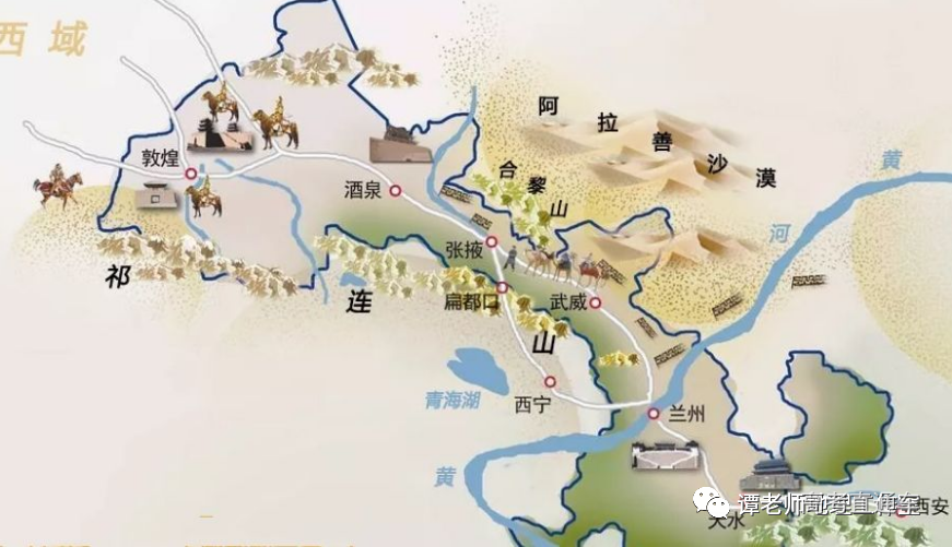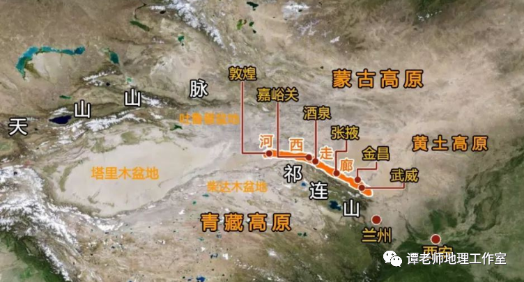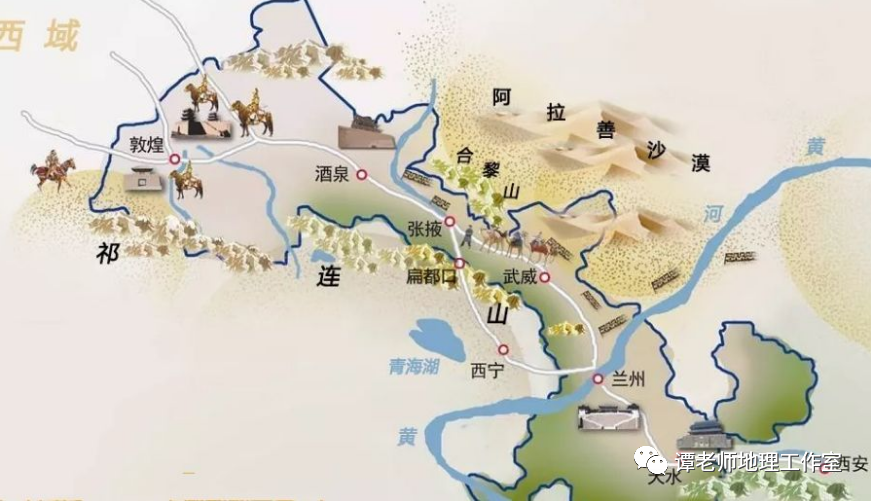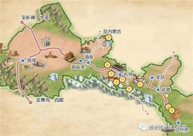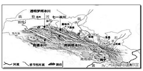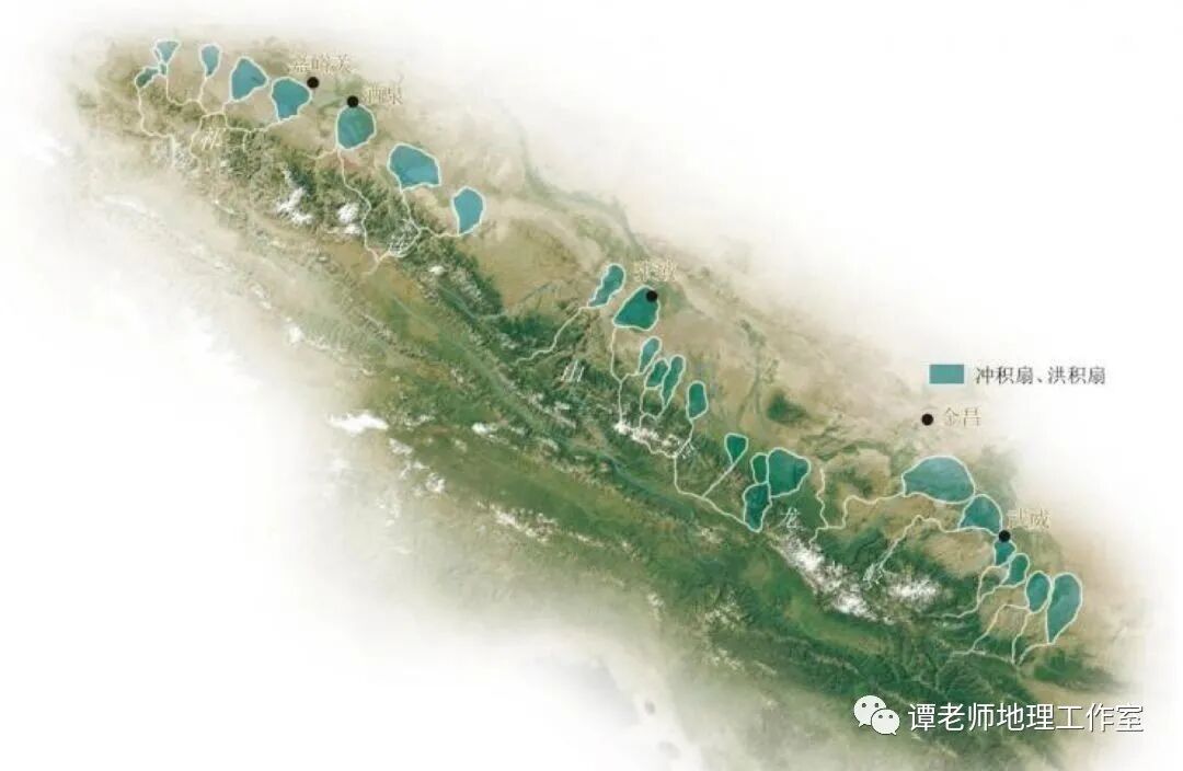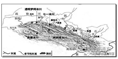 河西走廊上一个个绿洲像小岛一样散落在茫茫沙漠中,成为农耕和城市发展的重要依托。 河西走廊水源分布均衡,其实就是祁连山北部冰川分布均衡的结果。