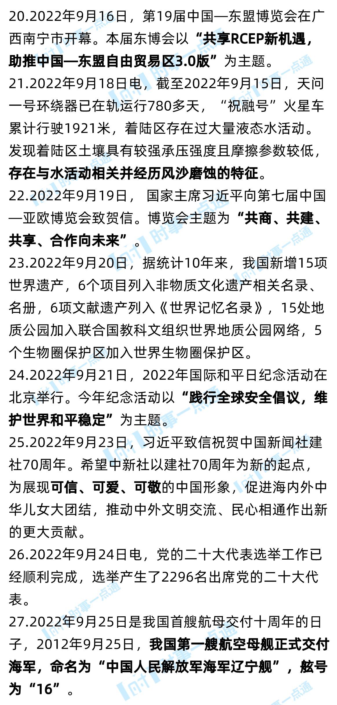1. 2022年9月1日,我国航天员陈冬、刘洋首次实施从问天实验舱气闸舱出舱舱外、由小机械臂辅助实施的出舱活动。