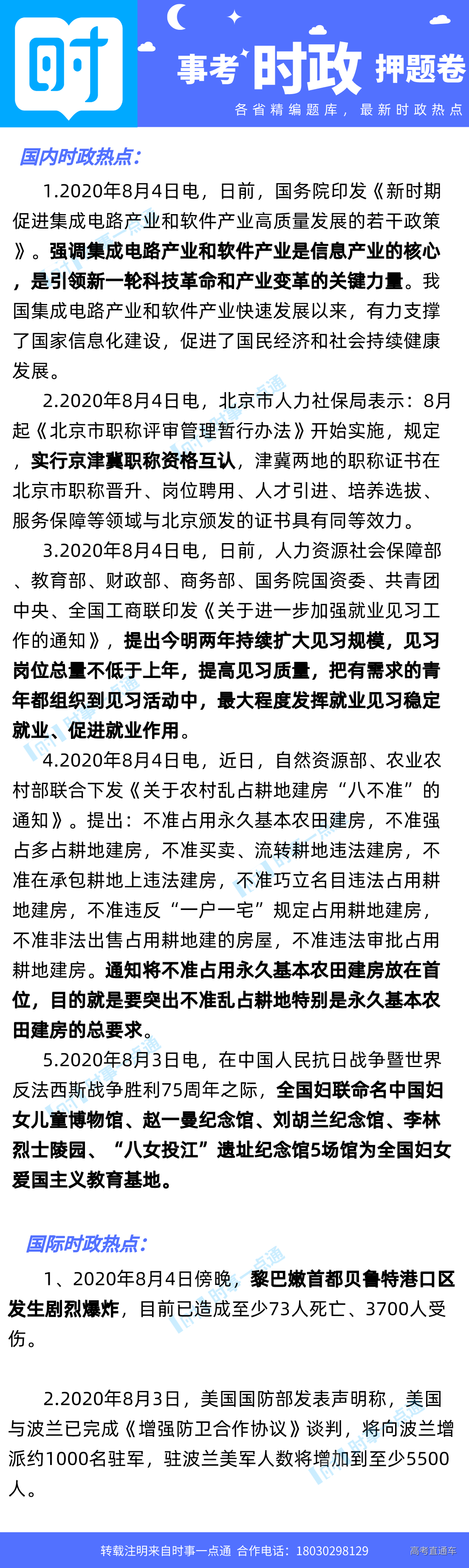 2020年8月5日国内外时政考点