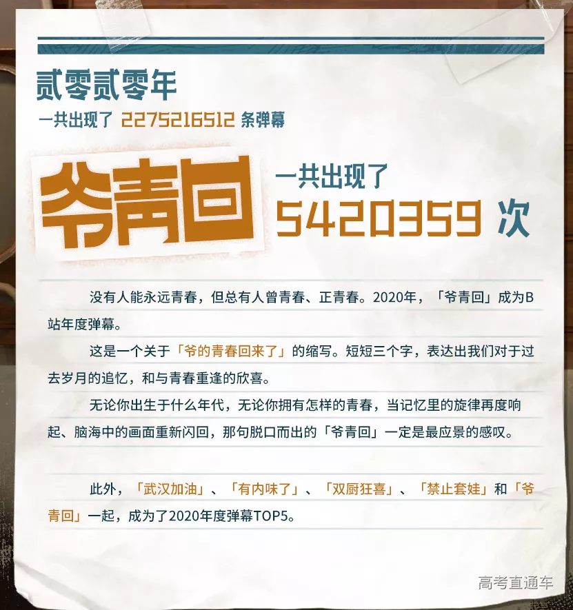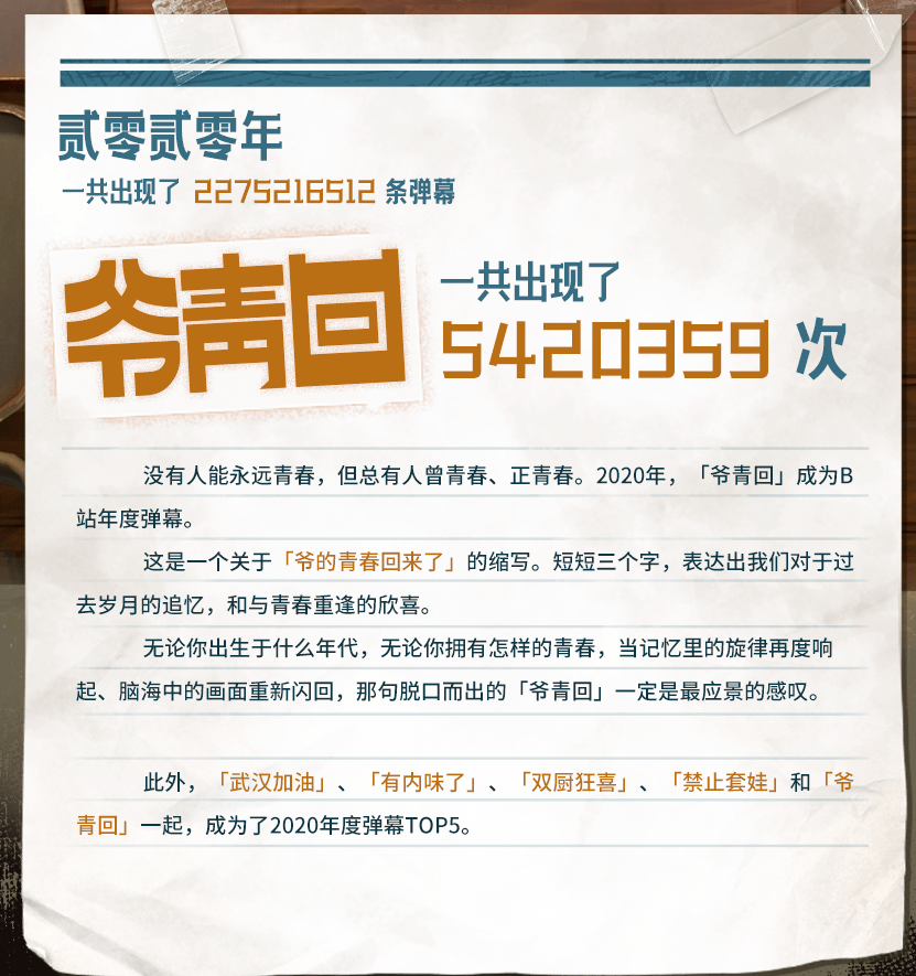 12月1日,哔哩哔哩(以下简称“B站”)发布了2020年度弹幕,“爷青回”荣登第一。“弹幕”用英语怎么说?“爷青回”又该如何翻译呢?今天就一起来学习一下吧!