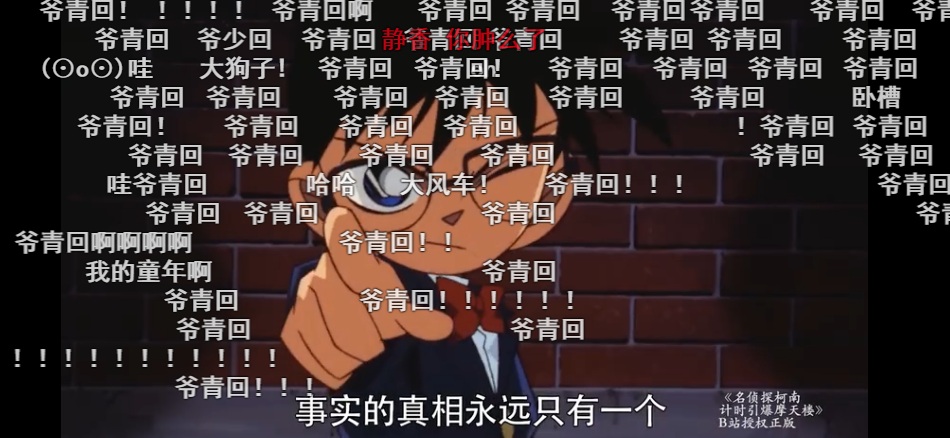 “弹幕” 怎么说? “弹幕”其实就是评论(comments)。因为弹幕是一条条弹出来的,就像子弹一样biubiubiu地出来,所以英语可以说: bullet (screen) comments bullet/ˈbʊl.ɪt/ 子弹 例句: I like reading bullet screen comments while watching videos. 我喜欢边看视频边看弹幕。 因为是实时评论,所以“弹幕”也可以说: real-time comments real-time 实时的,即时的 例句: Those real-time comments are funny! 那些弹幕太有趣了! “发弹幕”就是发表评论啦~ 用英语要怎么说呢? post bullet screen comments post 发布,发表 (PS:发朋友圈,发微博也用post) 比如: post WeChat Moments 发朋友圈 post Sina-Weibo 发微博 ▲B站“弹幕”刷屏截图 有时候弹幕都是刷屏式的,那“刷屏”用英语怎么说? explode /ɪkˈspləʊd/ 消息爆炸了 例句: The news of Hong Kong problem explodes on the Internet. 香港问题在网上刷屏了。 此外,有【垃圾短信、垃圾邮件】刷屏的话: Spam /spæm/ 滥发信息 例句: Stop spamming! It's pointless! 别刷屏了!这些东西没用的。 学习了“弹幕”文化相关知识,接下来一起来学习下B站2020年度弹幕榜单TOP的翻译吧! No.1 爷青回 My youth is making a comeback 爷青回:用来表达人在变化后的环境中,面对曾经熟悉的人和事物时,油然而生的一种喜悦之情。常见于青春时代经历过的人、影视剧、游戏、动画等事物,以一种崭新的形式在当下再现和回归的场景中。 ▲《名侦探柯南》B站弹幕截图 在B站,不同年龄、不同爱好的用户,有着不同的“爷青回”的触发方式。 让一个动画爱好者发出“爷青回”弹幕的,可能是90年代的《灌篮高手》,也可能是2006年才播出的《喜羊羊和灰太狼》系列;让一个影视爱好者“爷青回”的,可能是央视版的四大名著,也可能是《教父》《哈利·波特》《指环王》等经典电影作品。 ▲《西游记》B站弹幕截图 此外,“武汉加油”“有内味了”“双厨狂喜”“禁止套娃”等弹幕词也入选年度弹幕前五。 No.2 武汉加油 Come on Wuhan 2020年初,于武汉市爆发的新冠肺炎疫情牵动着全国乃至全世界人民的心,社会各界齐声为武汉加油。 No.3 有内味了 Finally getting it right 有内味了:有那个味道、有那种感觉了,形容某种事物是否地道、正宗,或一个人的操作或言行有某个人的既视感。 No.4 双厨狂喜 双厨狂喜:指形容看到一个作品中同时融合了自己喜欢的两件事物时的激动心情(an expression of the excitement to see two favorite idols appear in the same work)。 No.5 禁止套娃! No old tricks please! 禁止套娃:来源于俄罗斯著名的传统玩具套娃,意思是制止别人一直套一个素材、话题的无限循环行为。 ▲B站2019年年度弹幕“AWSL” 作为一种即时互动方式,弹幕直观地呈现了观众对特定内容的共情反应。 今年,你最爱用的B站弹幕上榜了嘛?