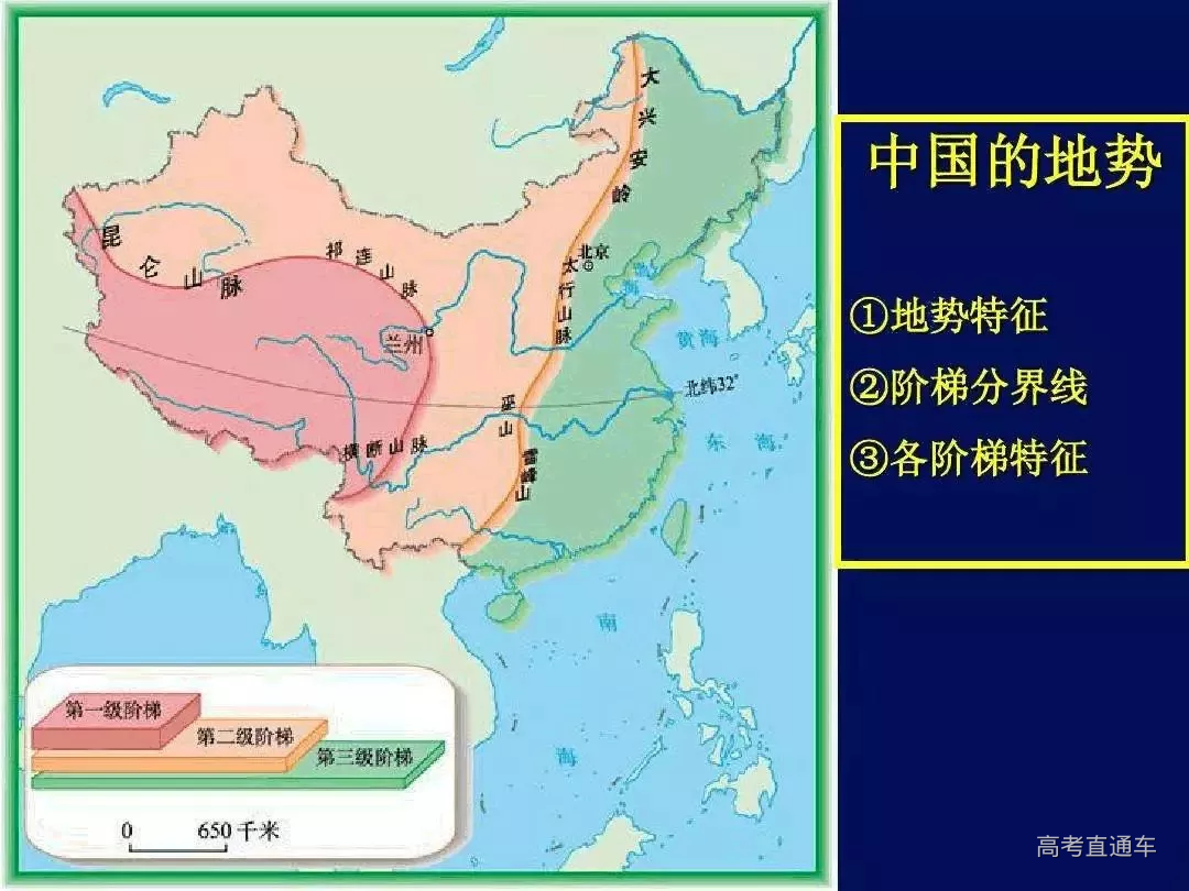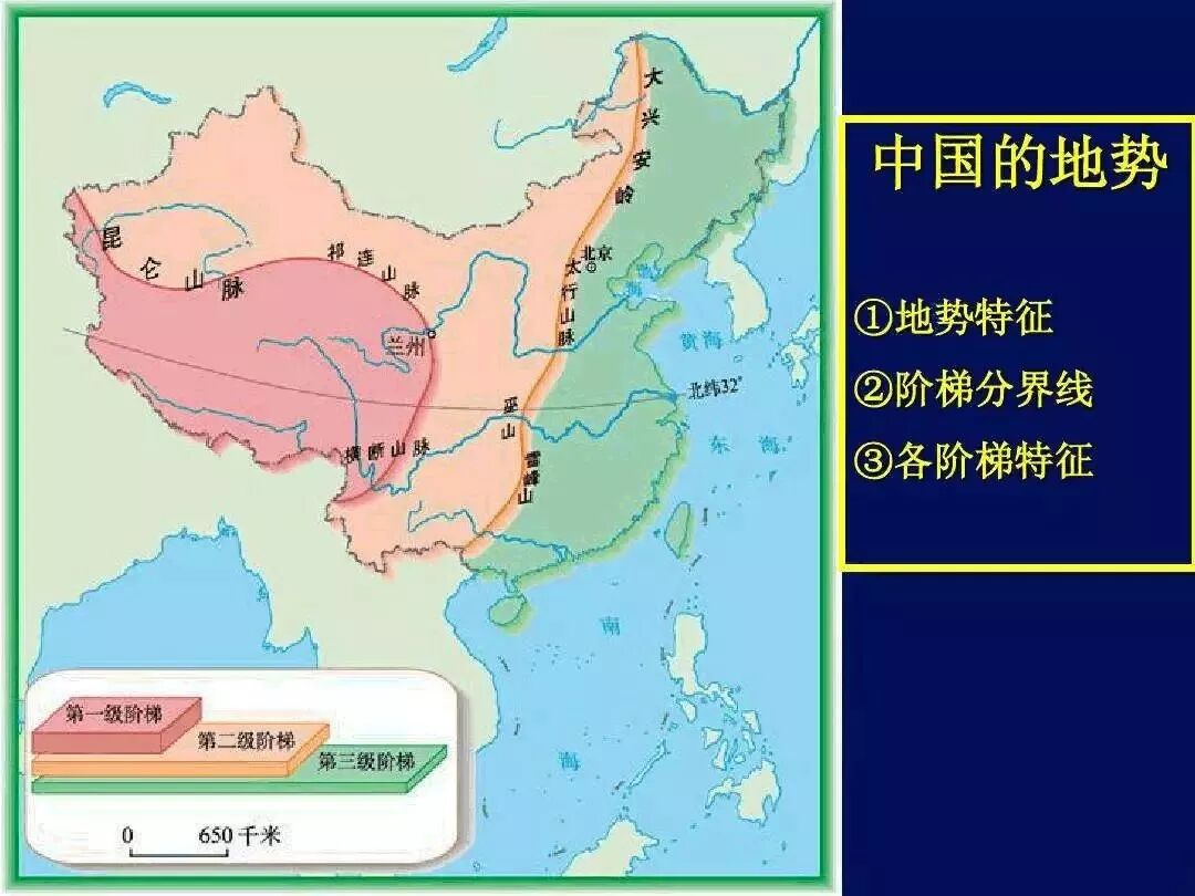 1.第一级阶梯和第二级阶梯的界线:西起昆仑山脉,阿尔金山脉,经祁连山脉向东南到横断山脉东缘。
