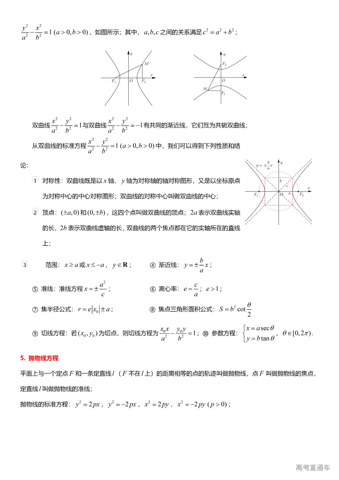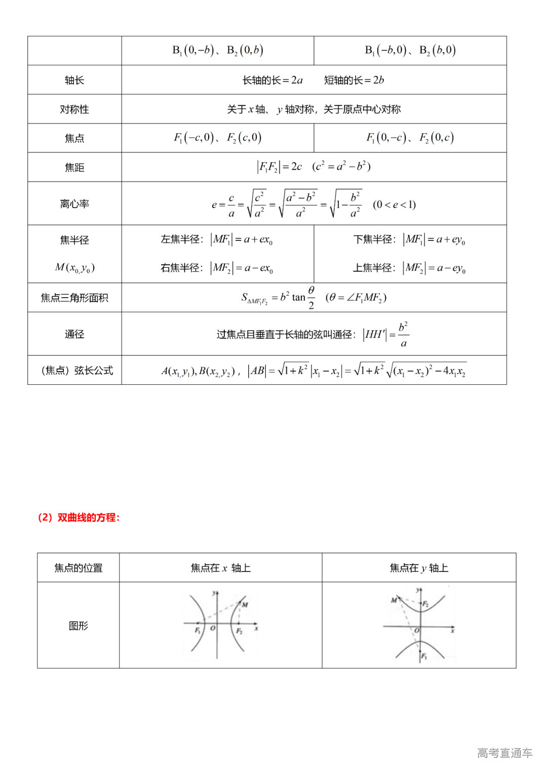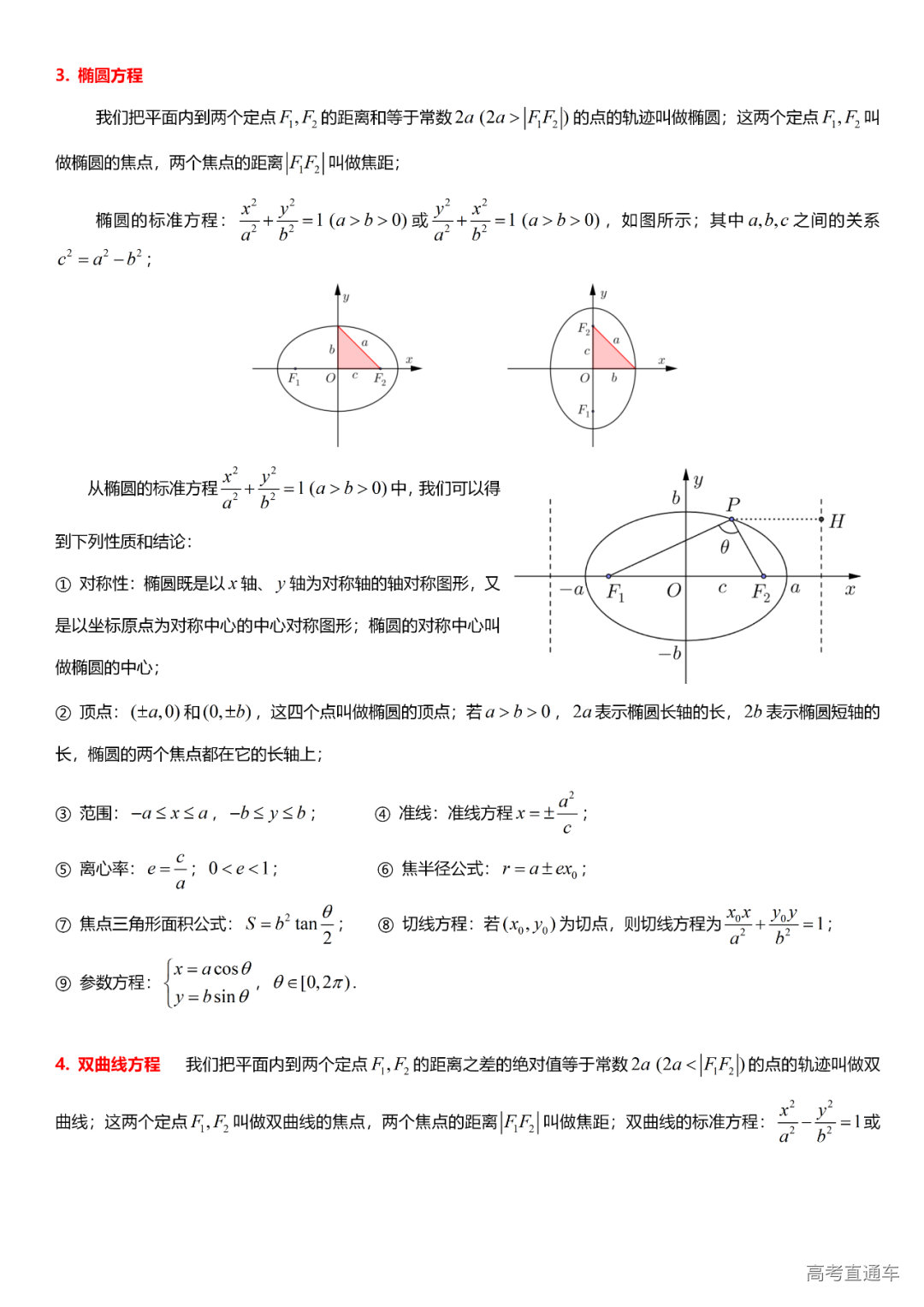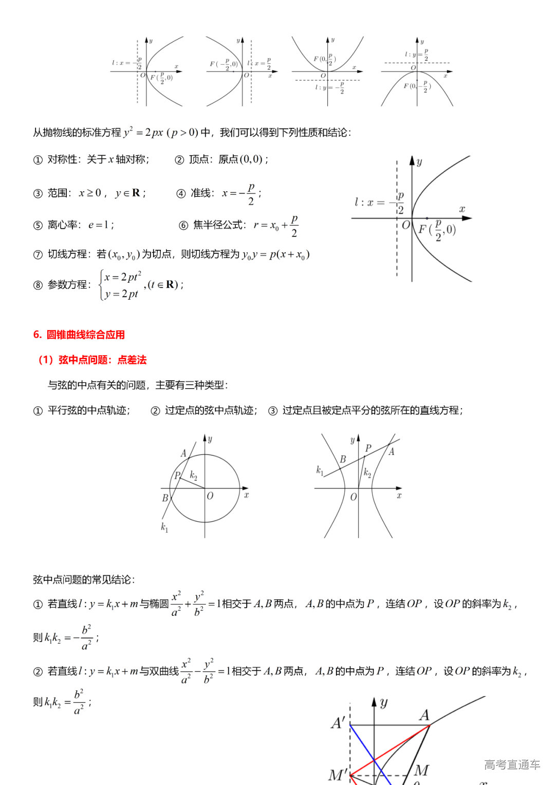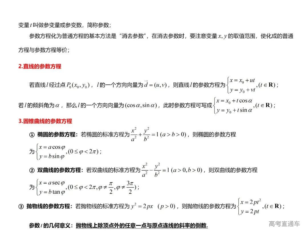 (8)圆锥曲线方程:椭圆的方程、双曲线的方程、抛物线的方程、直线与圆锥曲线的位置关系、轨迹问题、中点弦问题、圆锥曲线的应用、参数方程。
