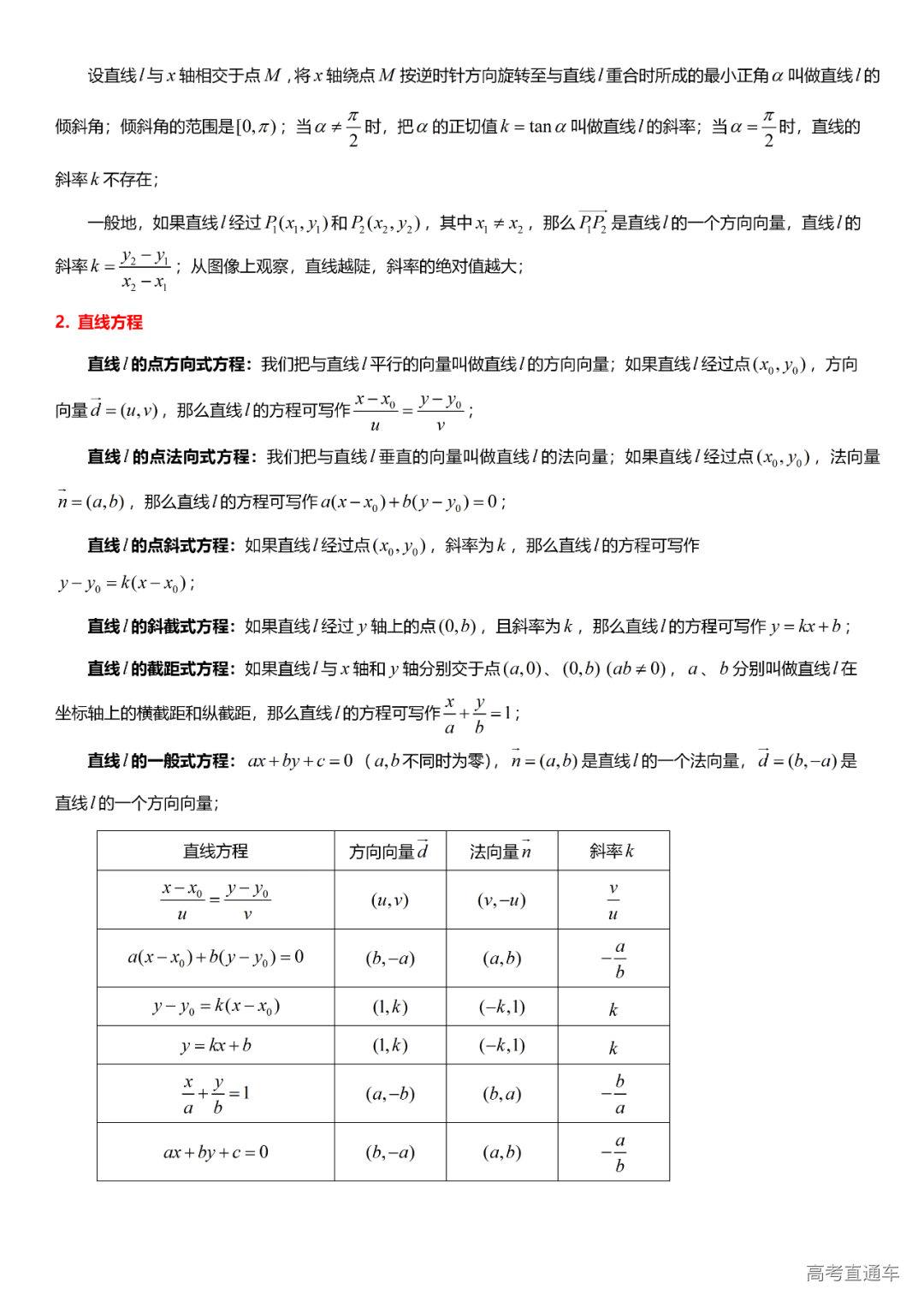 (7)直线和圆的方程:方向向量、法向量、直线的方程、两直线的位置关系、线性规划、圆的方程、直线与圆的位置关系。