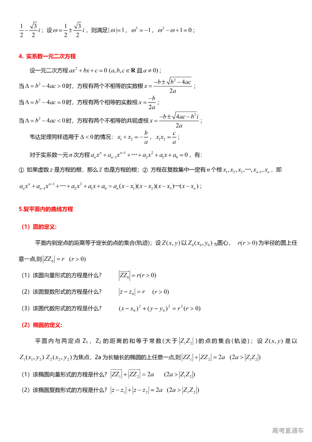 (12)复数:复数的概念与运算、复数的平方根与立方根计算、实系数一元二次方程。