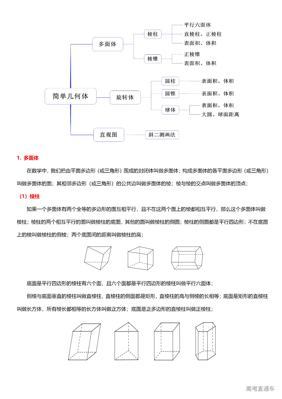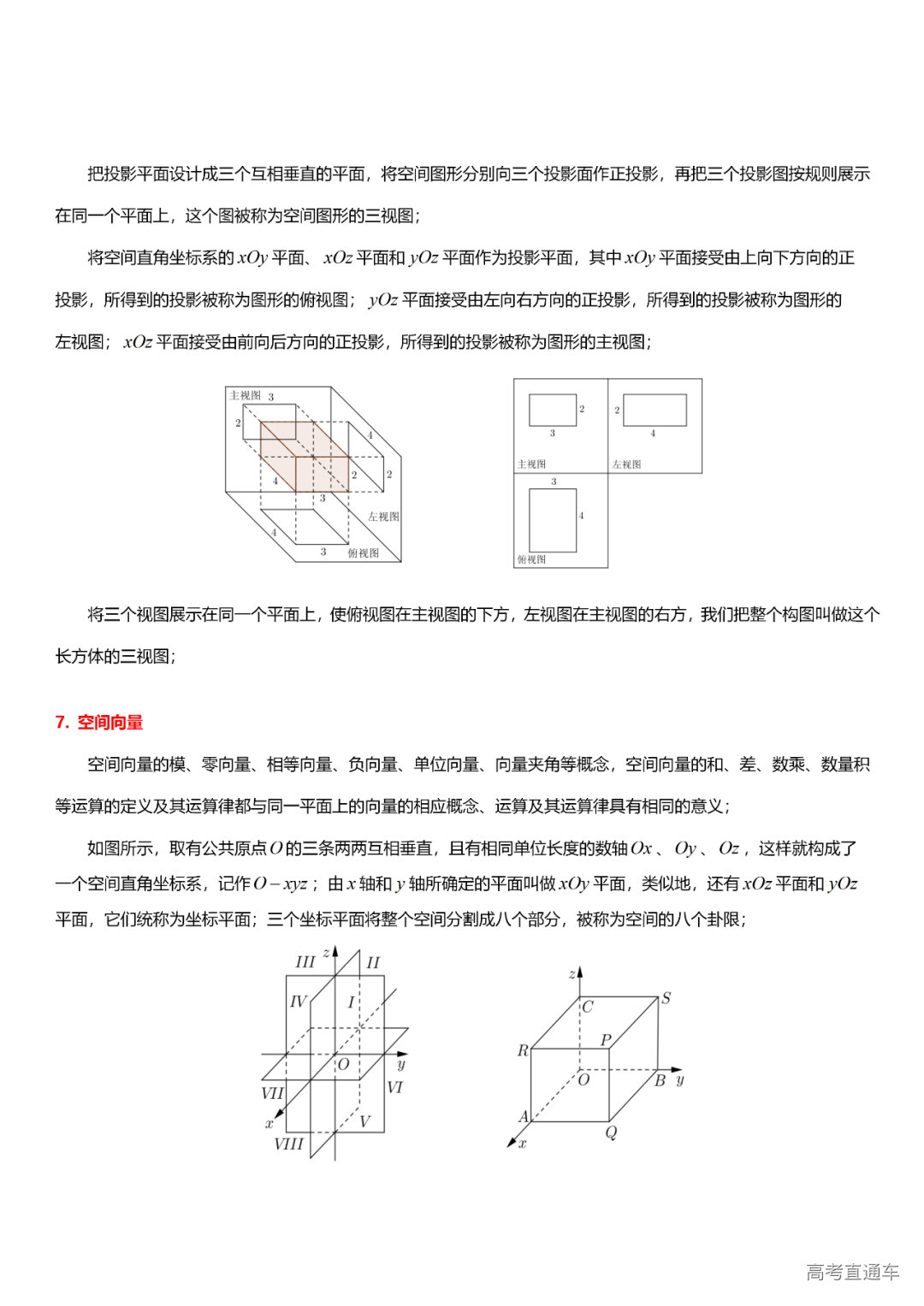 (9)立体几何与空间向量:空间直线、直线与平面、平面与平面、棱柱、棱锥、球与球面距离、几何体的三视图与直观图、几何体的表面积与体积、空间向量。