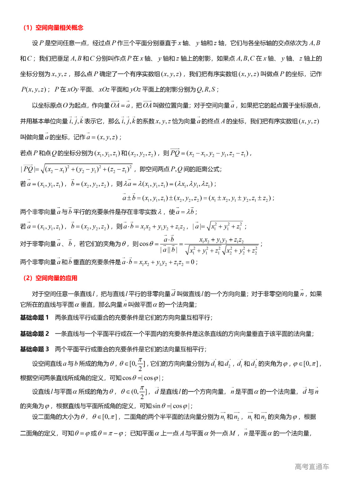 (5)平面向量:有关概念与初等运算、线性运算、三点共线、坐标运算、数量积、三角形“四心”及其应用。