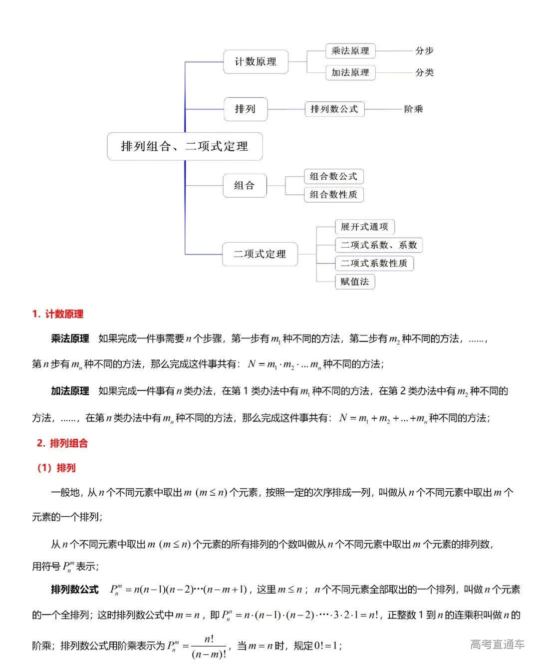 (10)排列、组合:排列、组合应用题、二项式定理及其应用。