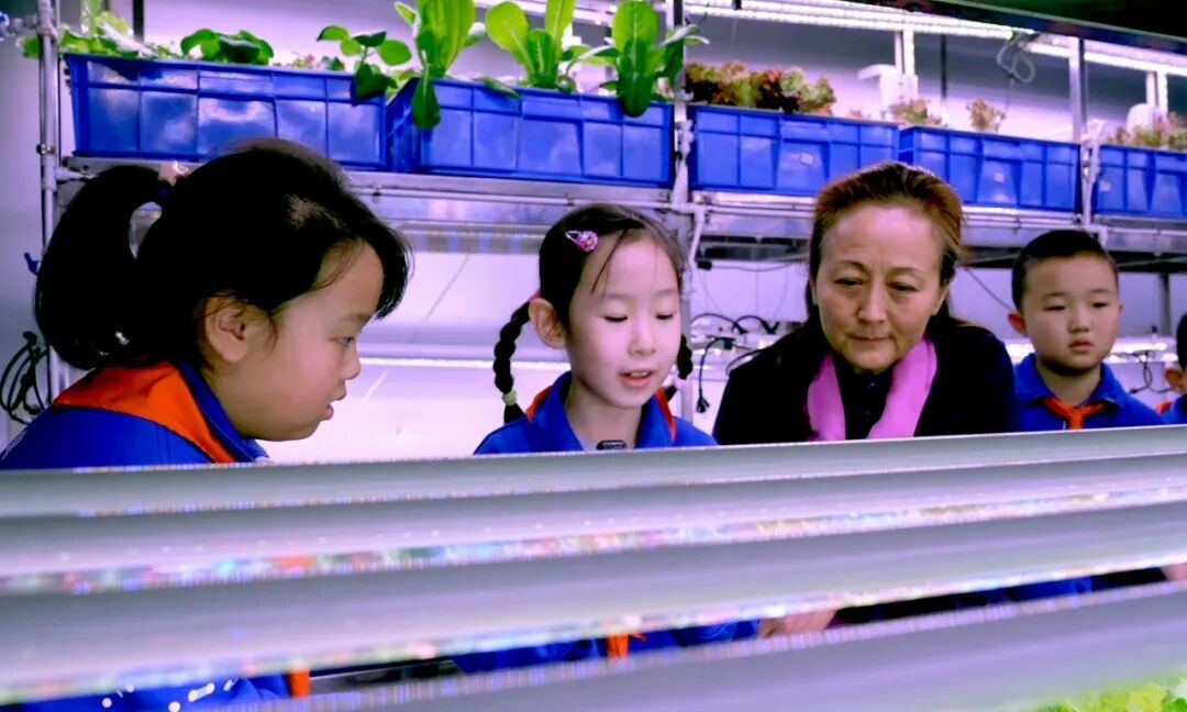 中国教育电视台记者跟随“月宫一号”总设计师刘红走进北航附小,报道科学教育的开展情况。