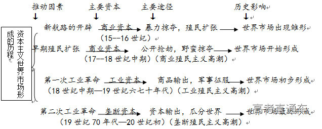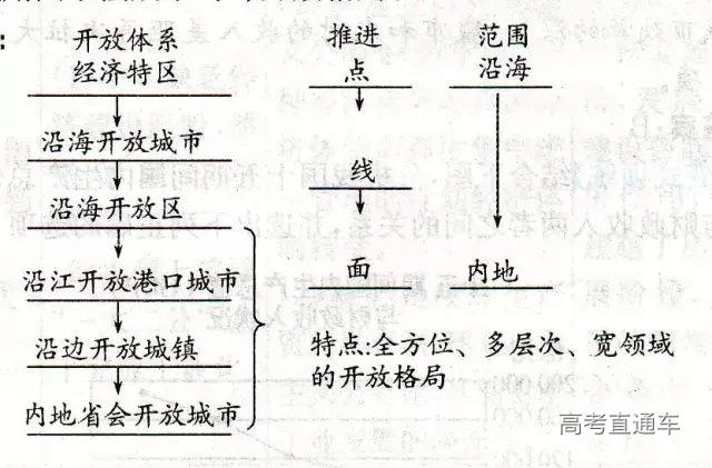 4.垂直图示法:如:对外开放格局逐步形成与特点: