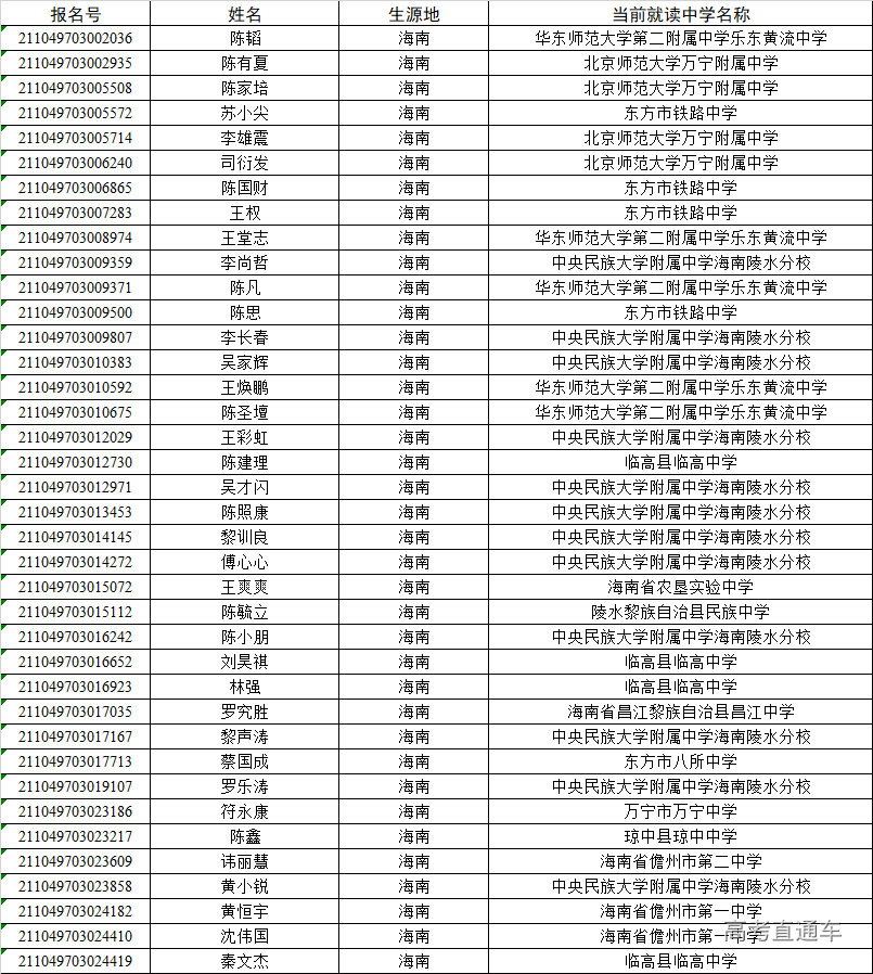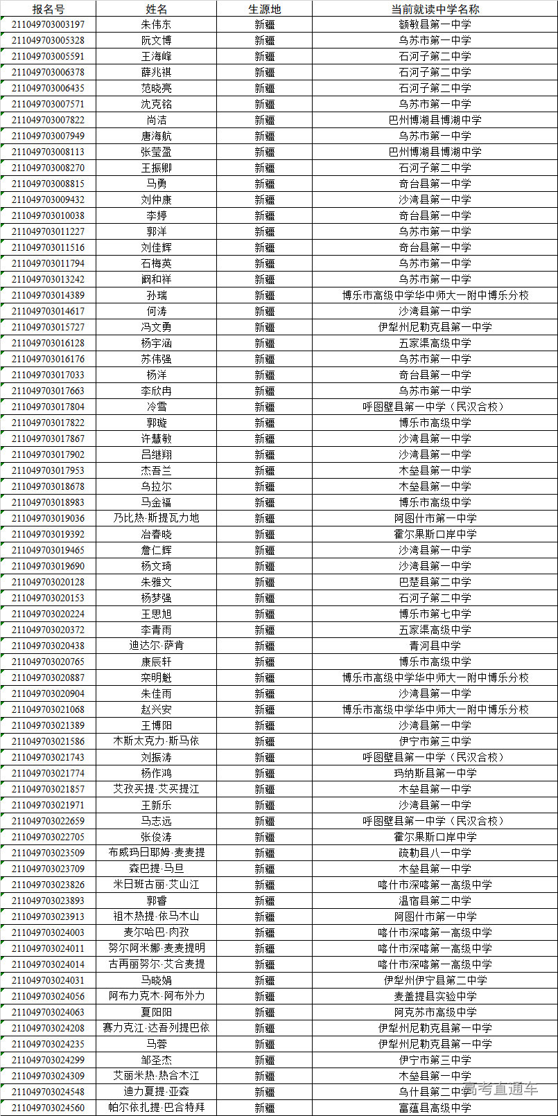 附件1:2021年高校专项“励志计划”招生入选资格名单
