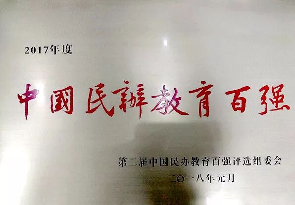 2017年,学校被中国民办教育百强评选组委会授予“2017年度中国民办教育百强”称号;
