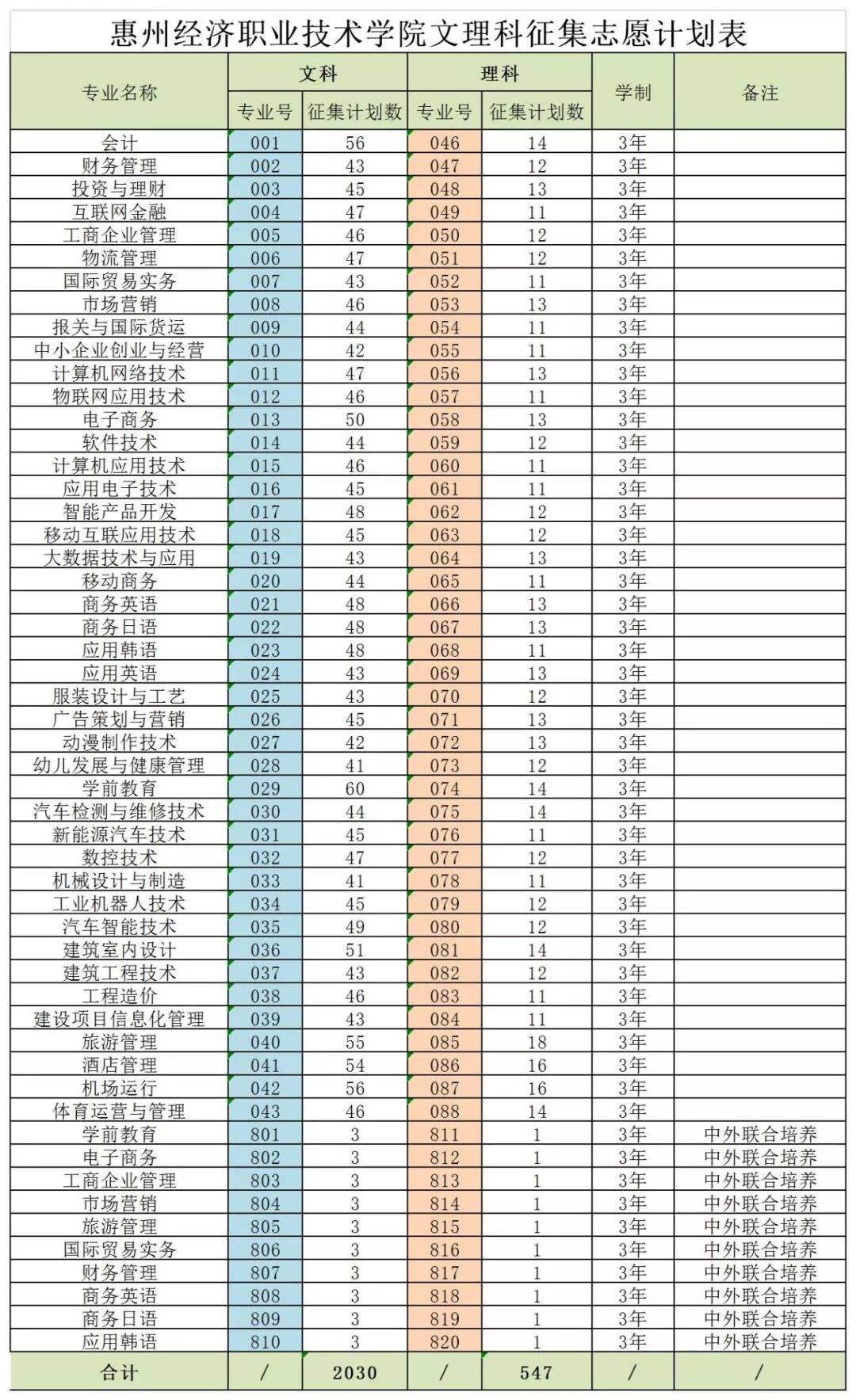惠州经济职业技术学院创办于2004年3月,是经广东省人民政府批准、国家教育部备案,广东省教育厅主管的全日制民办普通高等院校。目前,学校有财经学院、工商学院、信息工程学院、外国语学院、艺术设计学院、汽车与机械工程学院、建筑工程学院、旅游学院、体育学院、国际教育学院、继续教育学院、创业文化学院、马克思主义学院、人文基础学院等十四个二级学院,设有45个专业,全日制在校生11000余人。