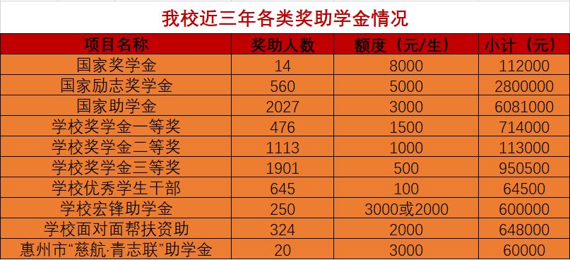 6.惠州市“慈航•青志联”助学金家庭经济困难的学生每年可申请惠州市“慈航•青志联”助学金,惠州市“慈航•青志联”助学金额度是3000元。