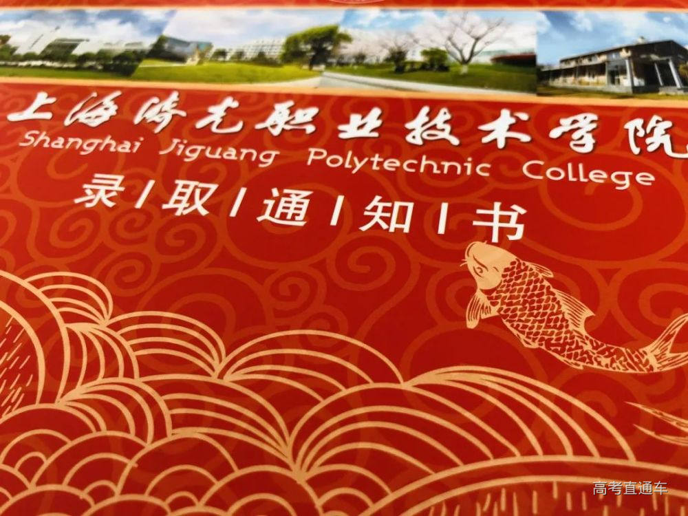 上海济光职业技术学院录取通知书选择中国红为主色,图形将传统纹样“锦鲤”和“涡纹”组合,象征着济光学子们超越自我、开明睿智、追求卓越、大气谦和的精神品质。