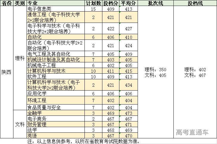 2020年电子科技大学中山学院在陕西分专业录取分数线