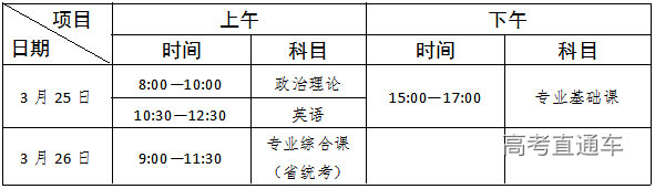 (四)普通专升本招生考试时间为2023年3月25日(星期六)至26日(星期日)两天,具体安排见下表:
