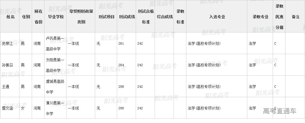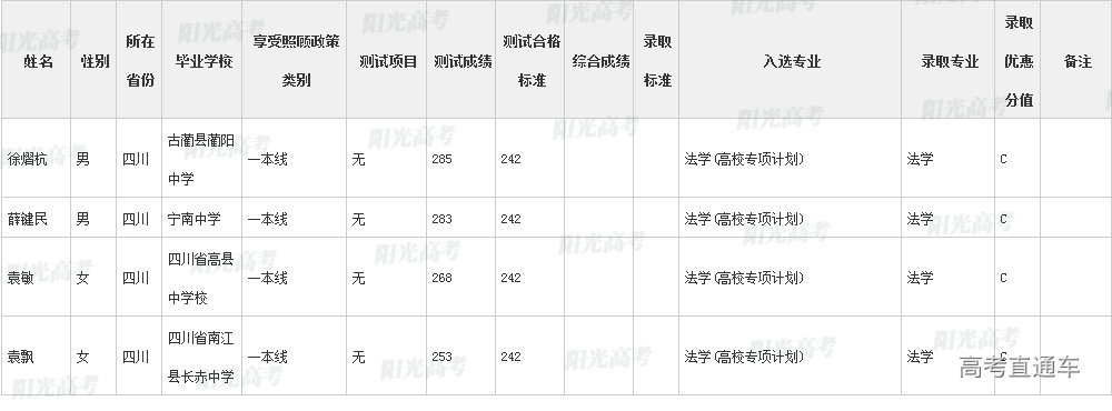 ②入选考生达到生源所在省份一本批次录取控制分数线即予以录取的,以“C”标注;也可是"C"+"数字",表示一本批次录取控制线上多少分录取,如C20表示一本批次录取控制线上20分录取;