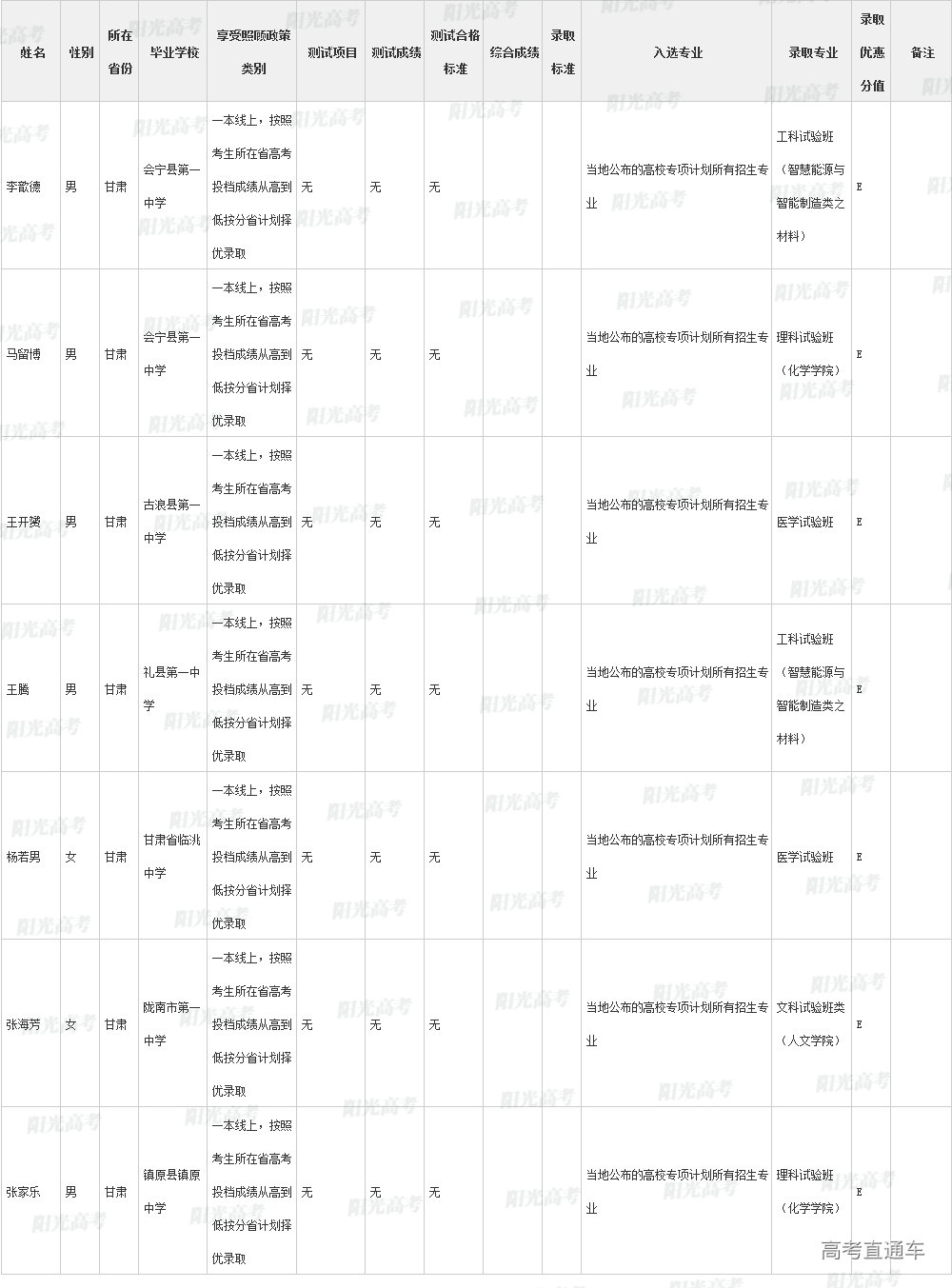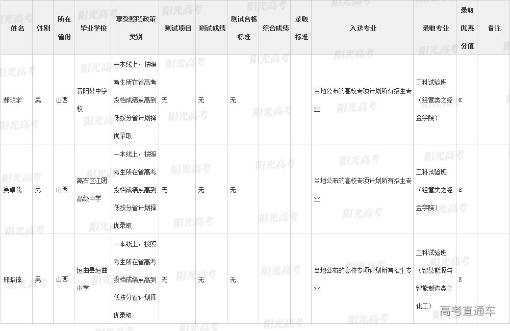 ②入选考生达到生源所在省份一本批次录取控制分数线即予以录取的,以“C”标注;也可是"C"+"数字",表示一本批次录取控制线上多少分录取,如C20表示一本批次录取控制线上20分录取;