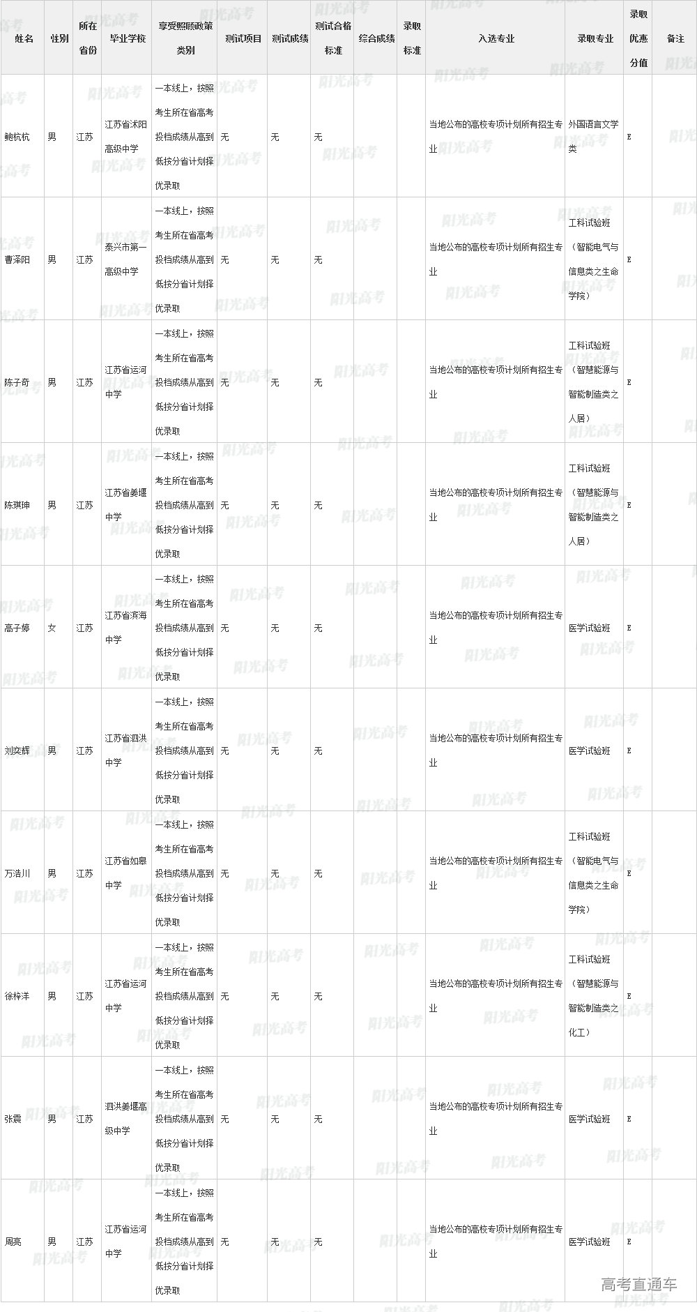 ①入选考生达到一本批次高校模拟投档线即予以录取的,以“B”标注;也可是"B"+"数字",表示高校模拟投档线下优惠多少分录取,如B20表示高校模拟投档线下优惠20分录取;