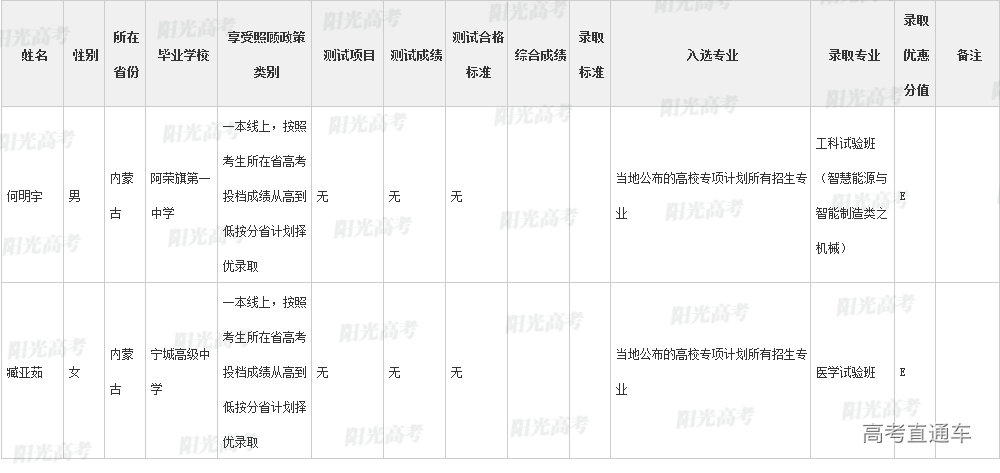 ③高校对学科特长或创新潜质特别突出的个别优秀考生一本批次录取控制分数线下破格录取的用D标注;