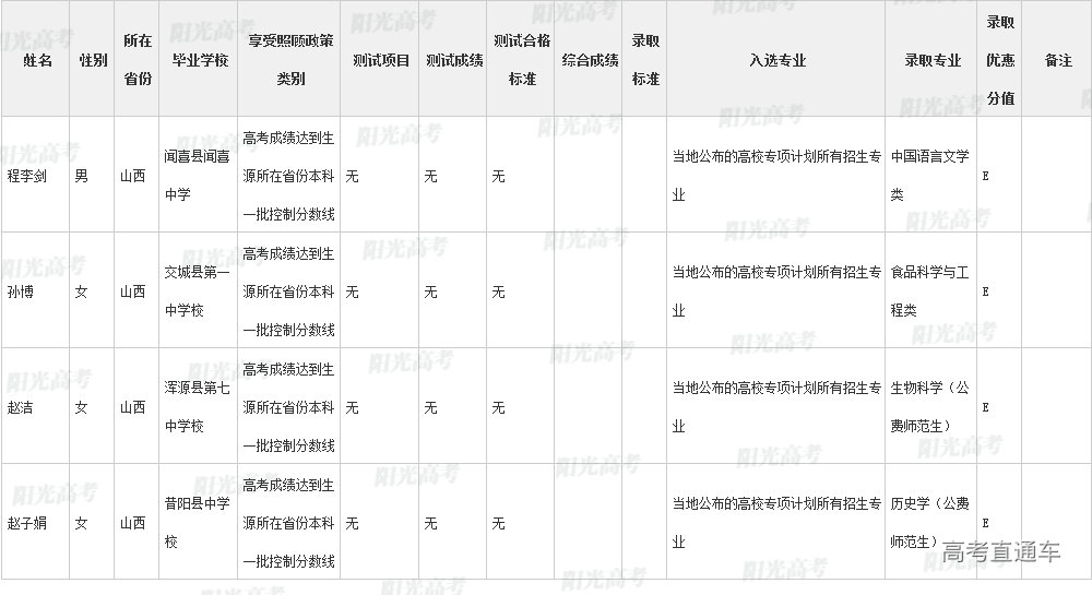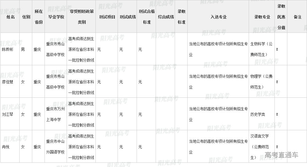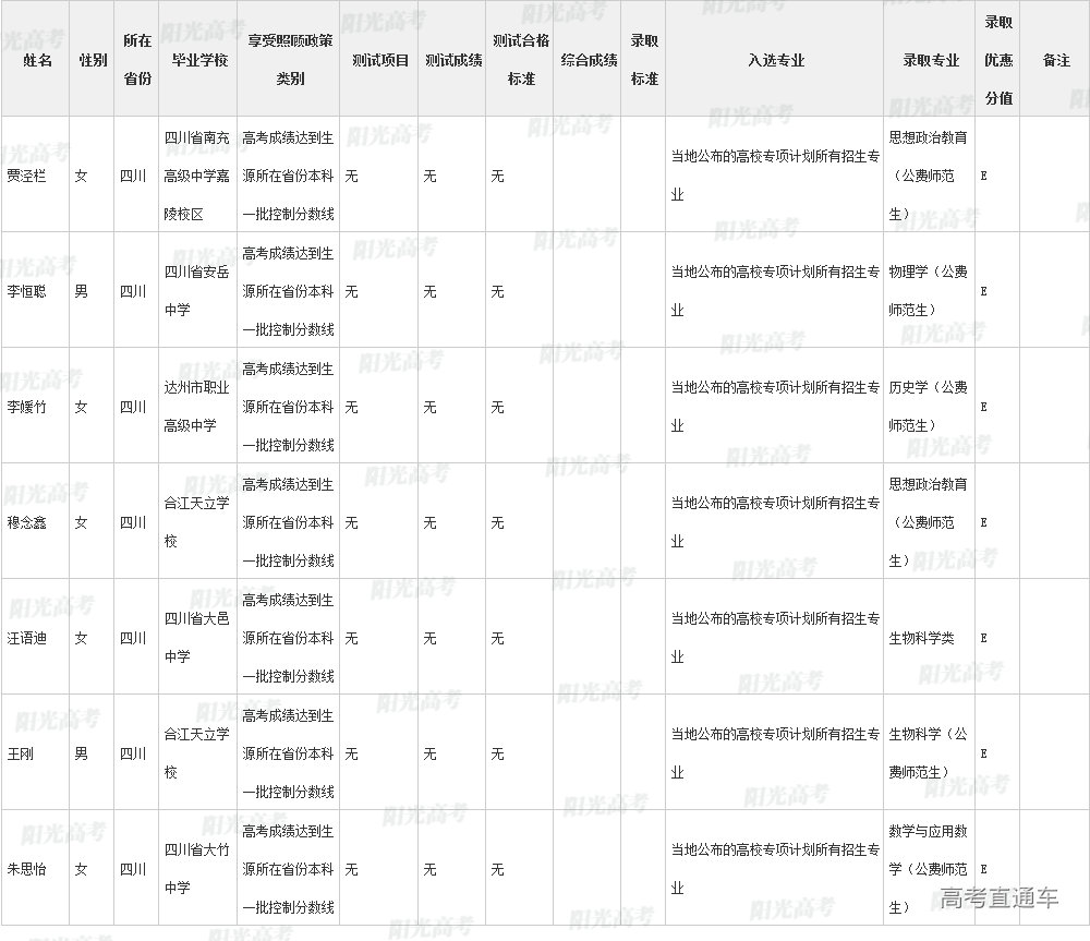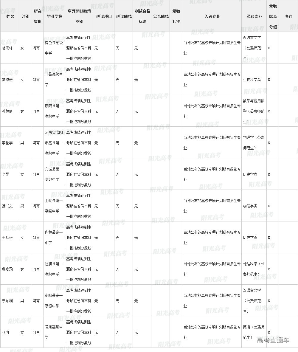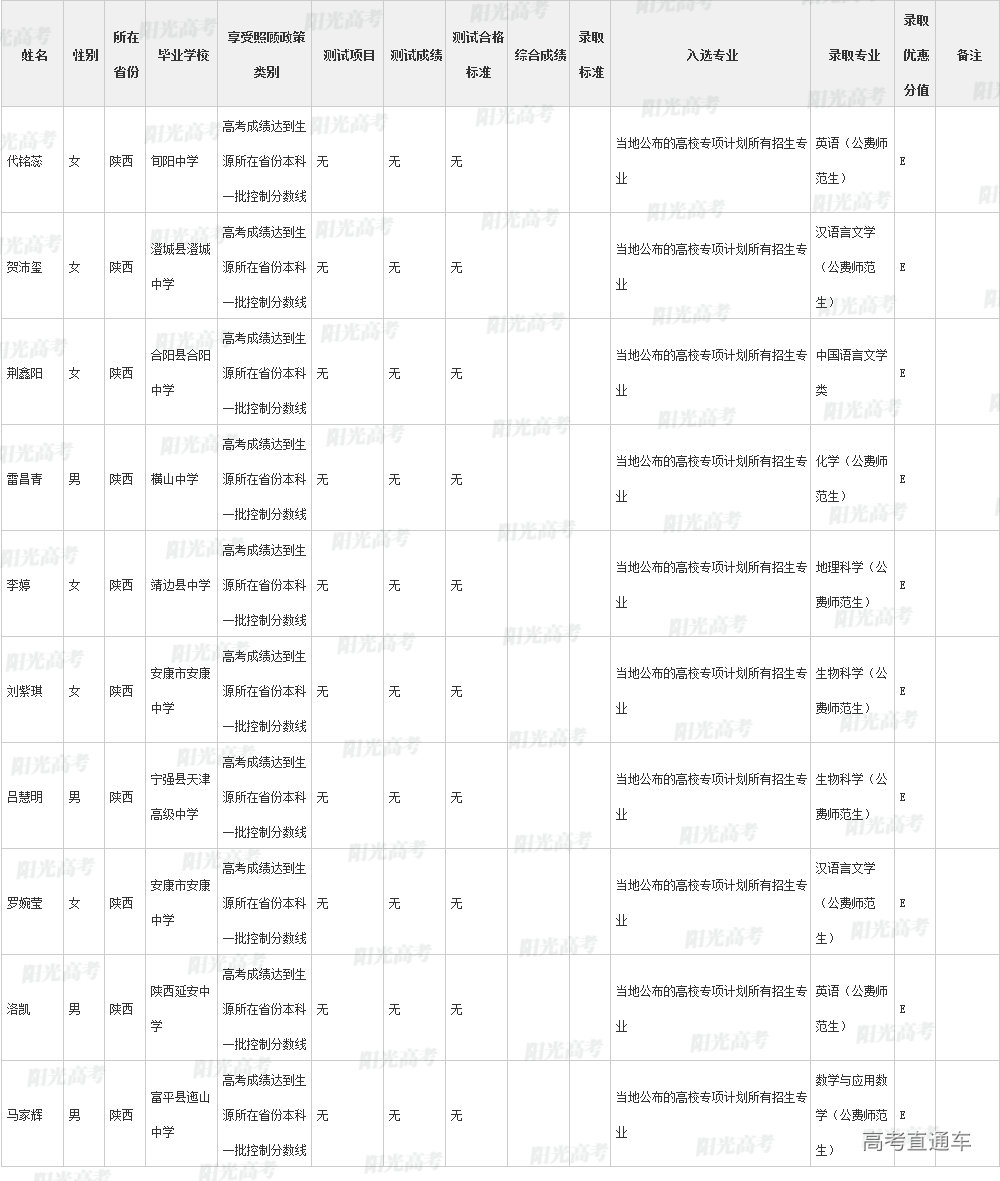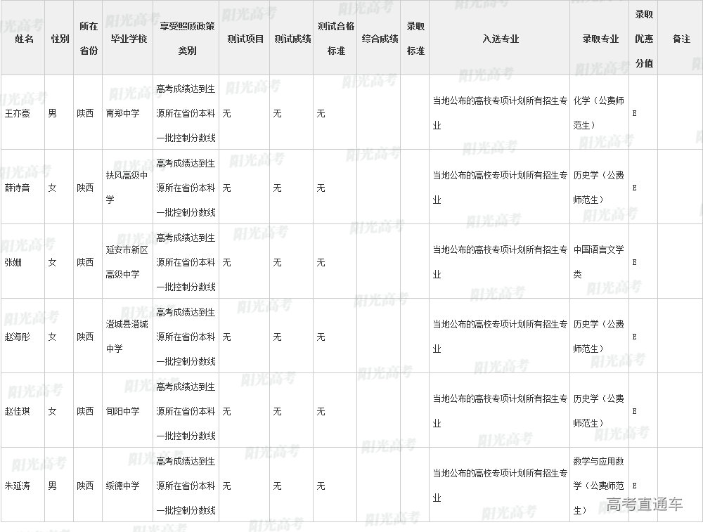 陕西师范大学2022年高校专项计划各省录取名单