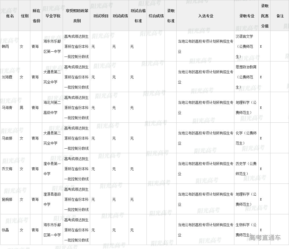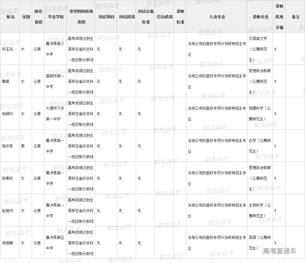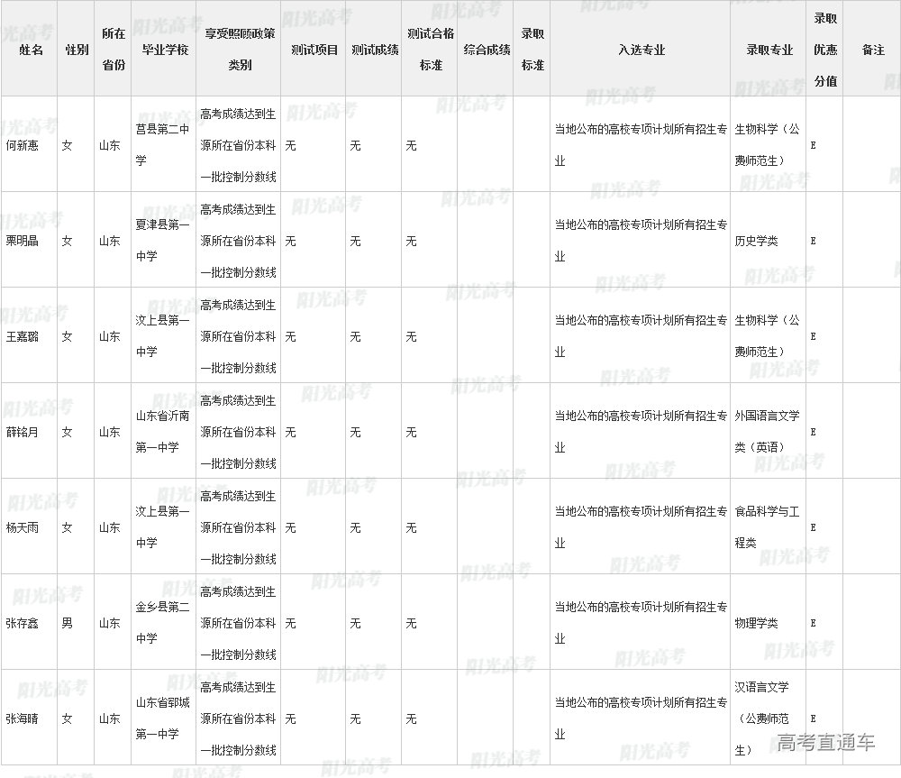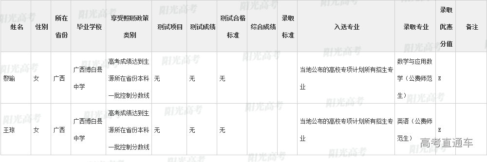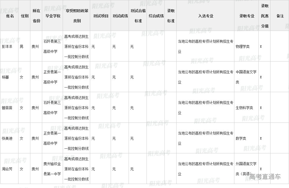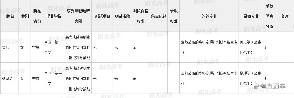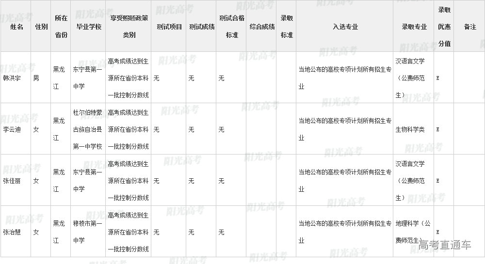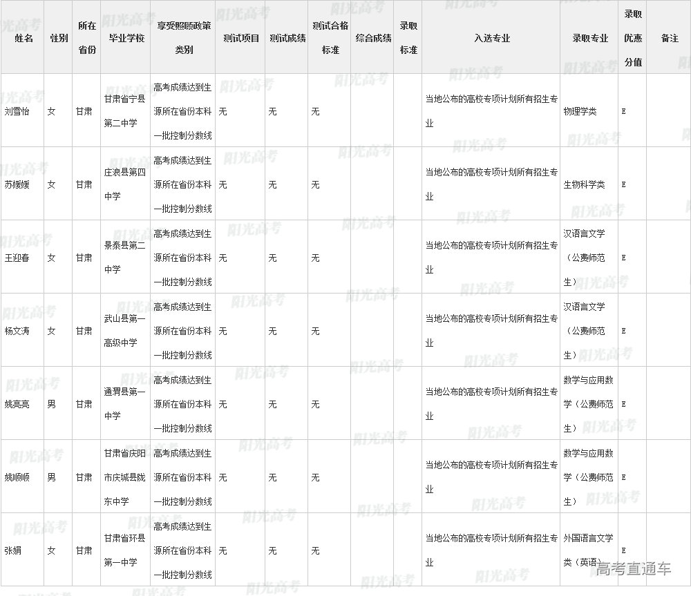 陕西师范大学2022年高校专项计划各省录取名单