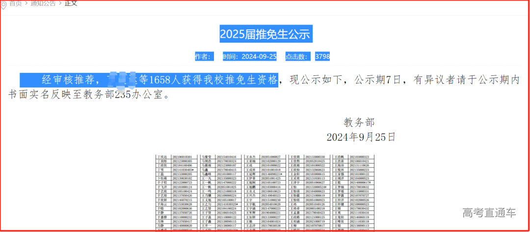 公示名单没有专业、学院,故无法列表学院保研人数。