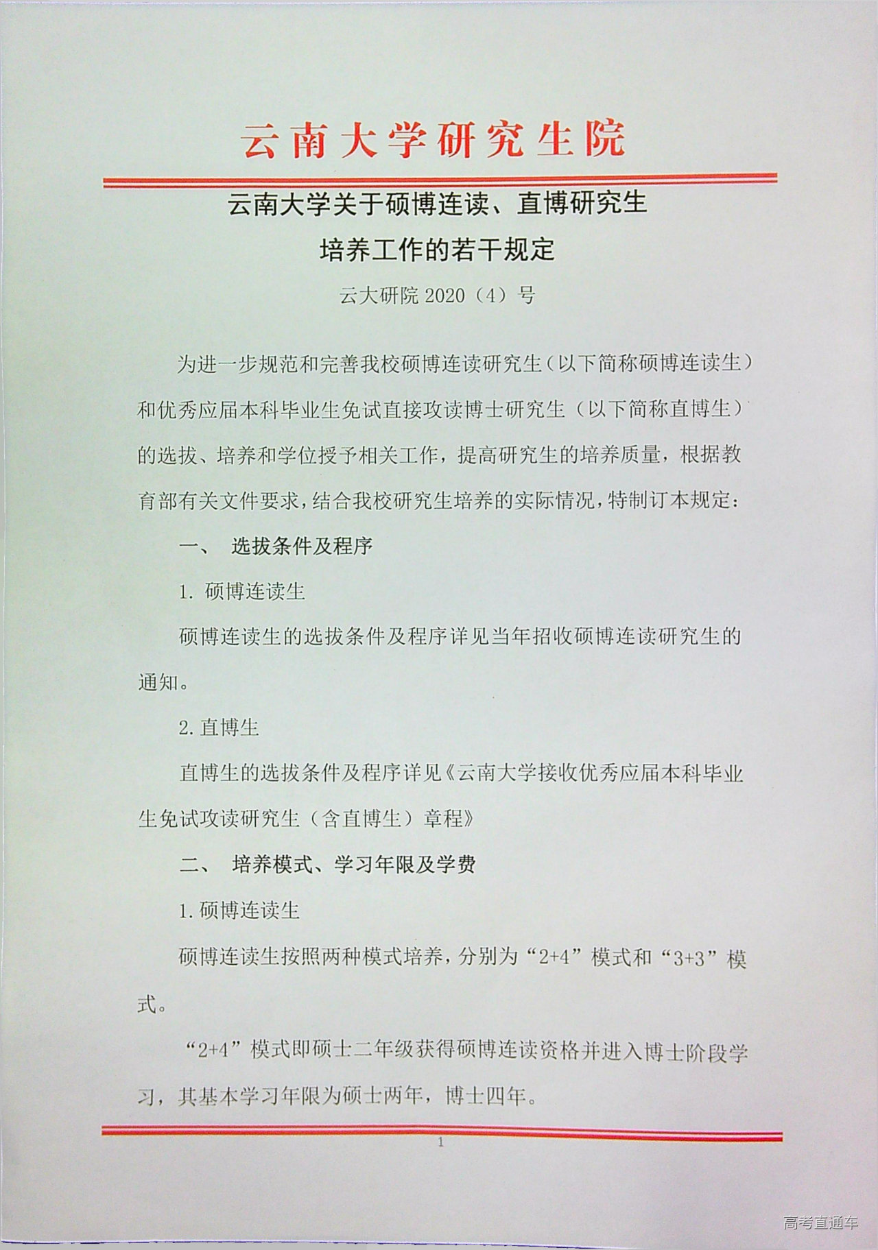 附件3:云南大学关于硕博连读、直博研究生培养工作的若干规定
