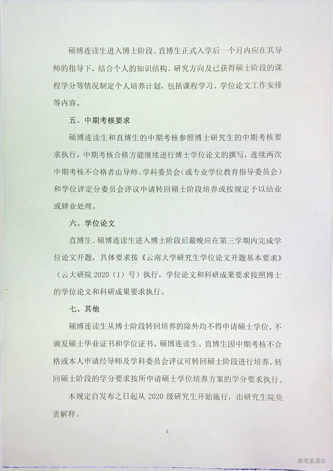 (八)直博生有关管理规定详见《云南大学关于硕博连读、直博研究生培养工作的若干规定》(附件3)。