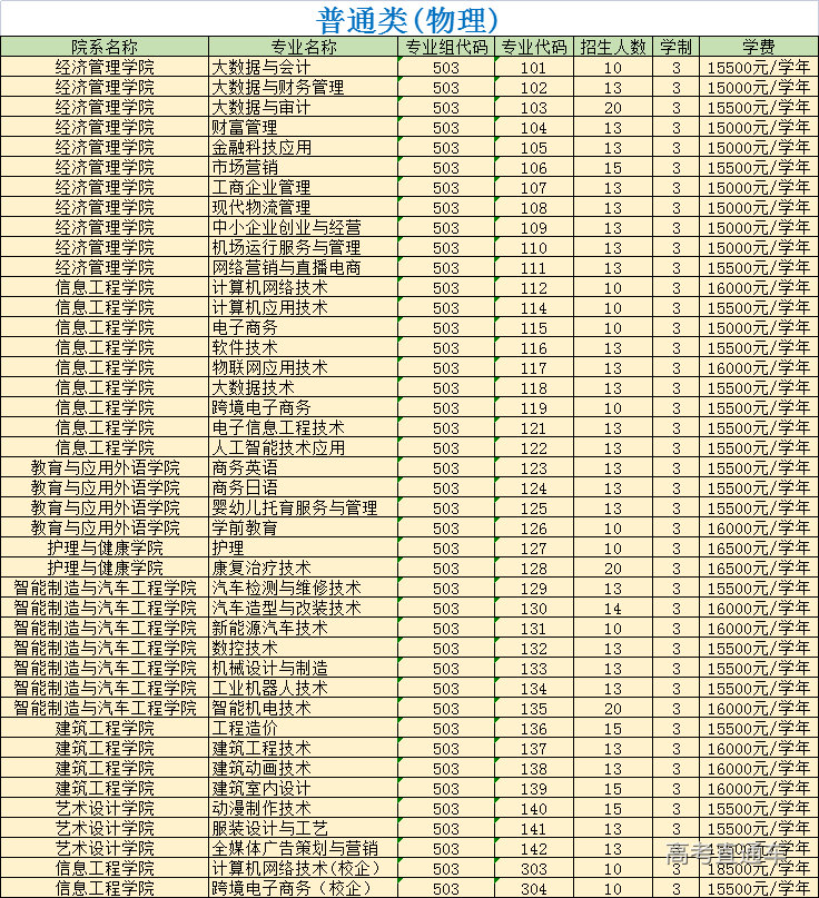 惠州经济职业技术学院2023年招生计划